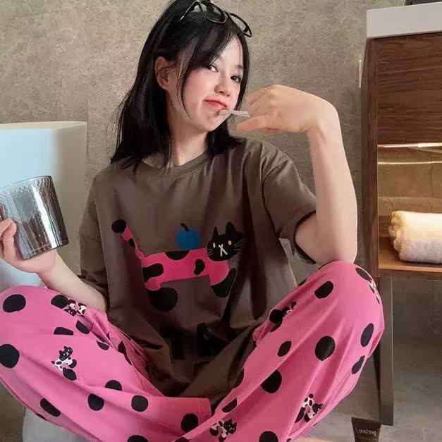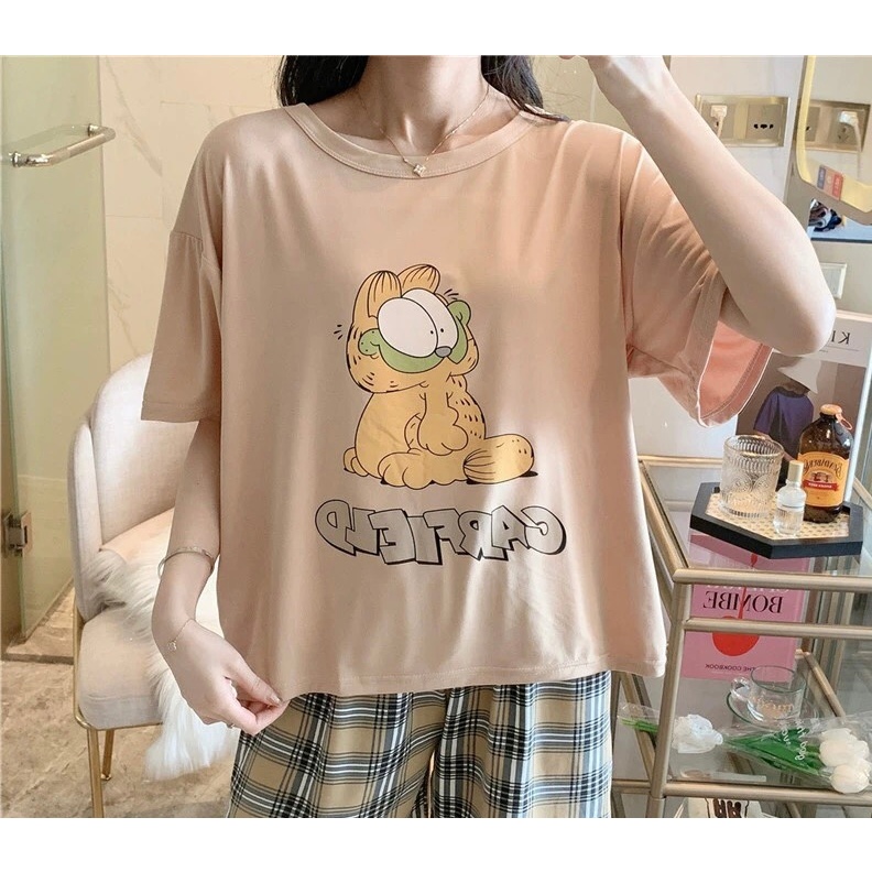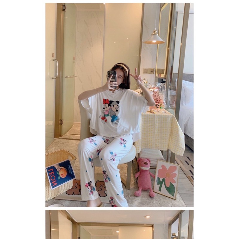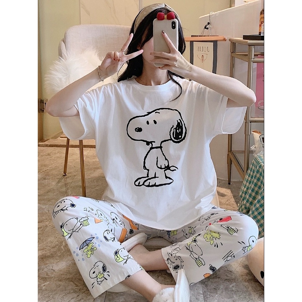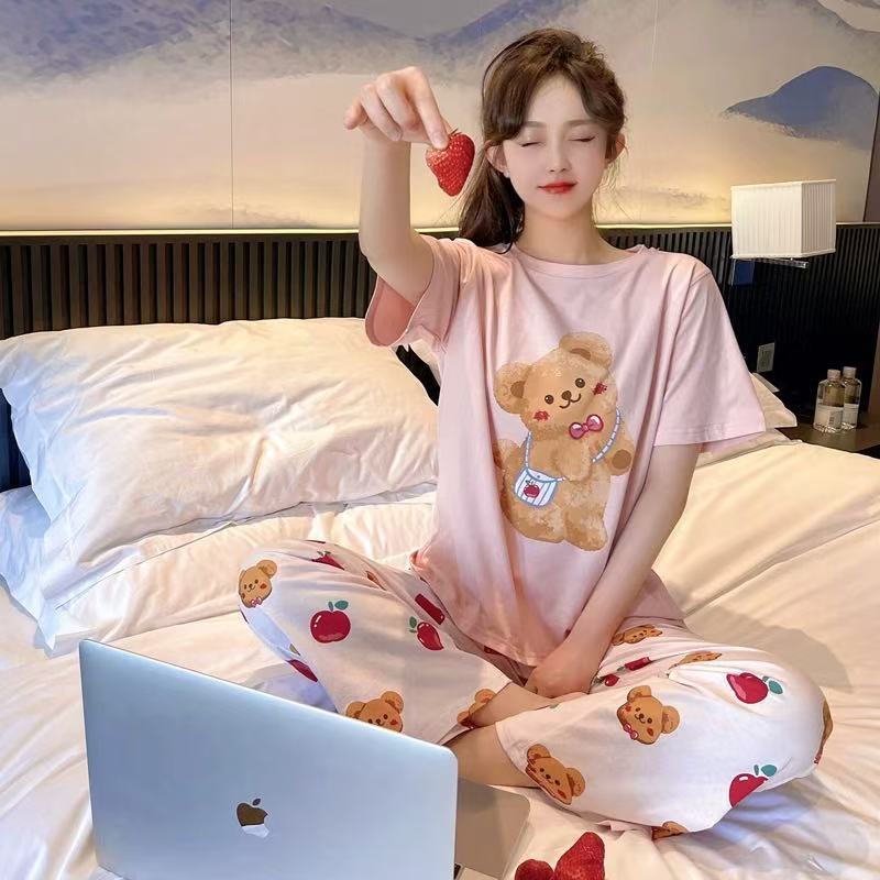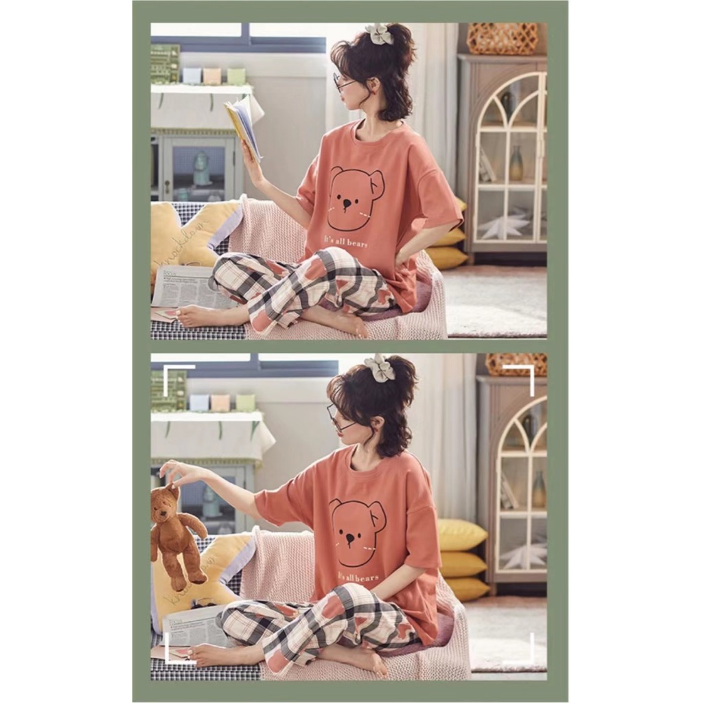 3600 E ชุดนอนน่ารักลวดลายการ์ตูน ชุดนอนคอกลมแขนสั้นขายาว เนื้อผ้านิ่มไม่เคืองผิว มีหลายสีและไซส์ให้เลือก