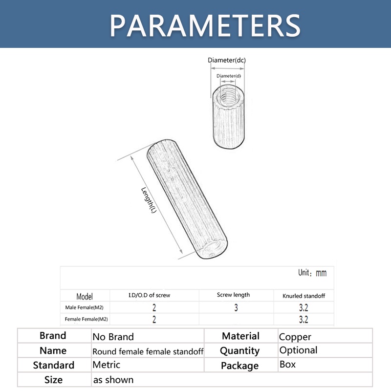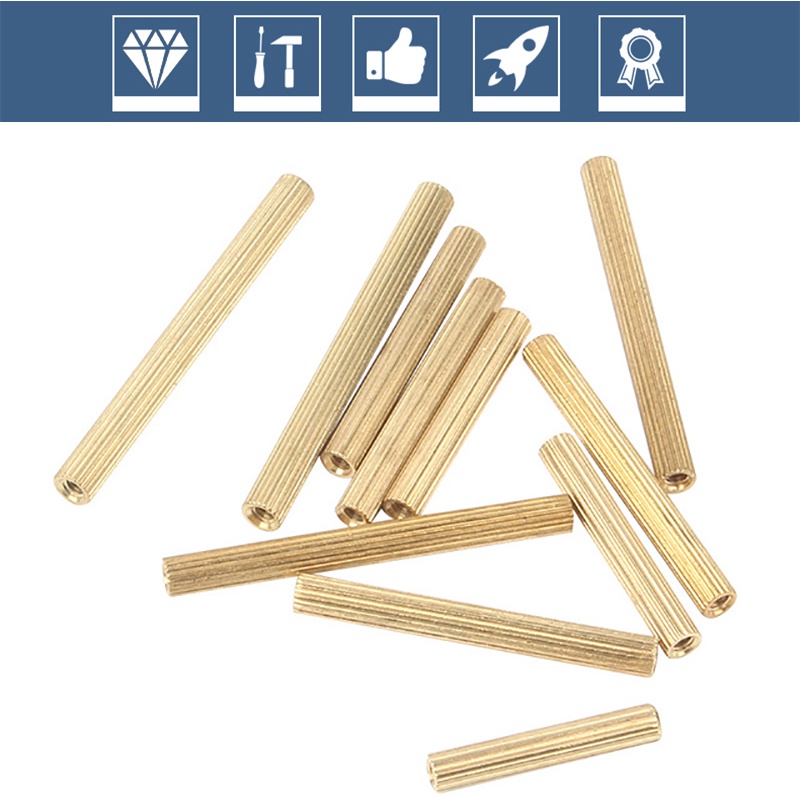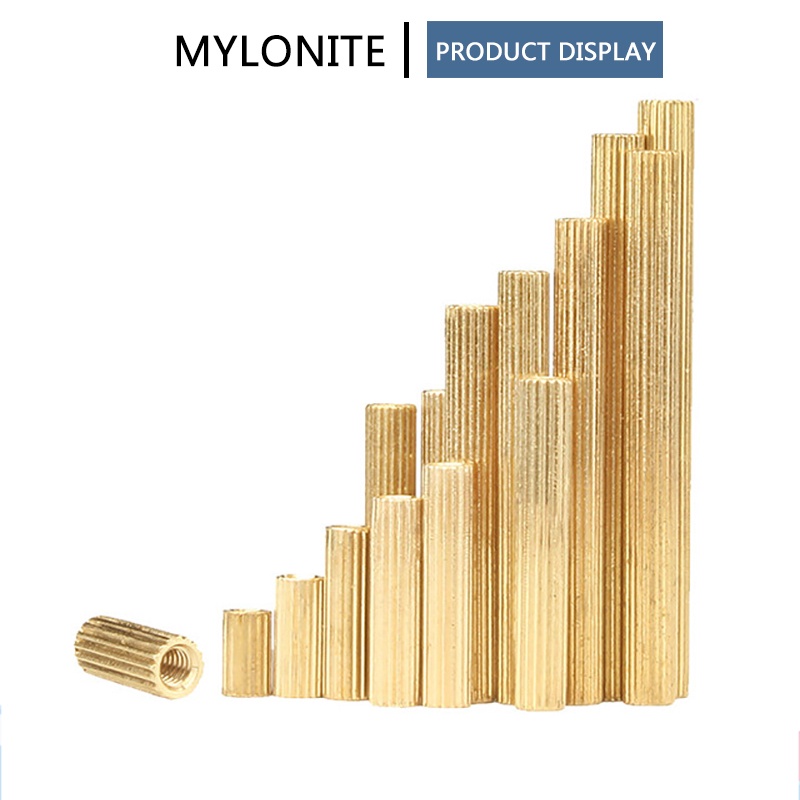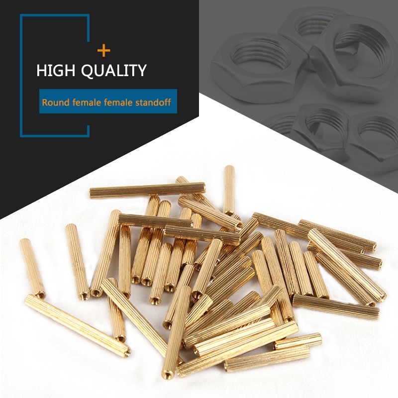 M2 ทองเหลือง Standoff Spacer คอลัมน์หญิงกับหญิงสกรู Knurled ทรงกระบอกแบนหัวทองแดง Spacing สกรูถั่วความยาว 3 มม.-34 มม.