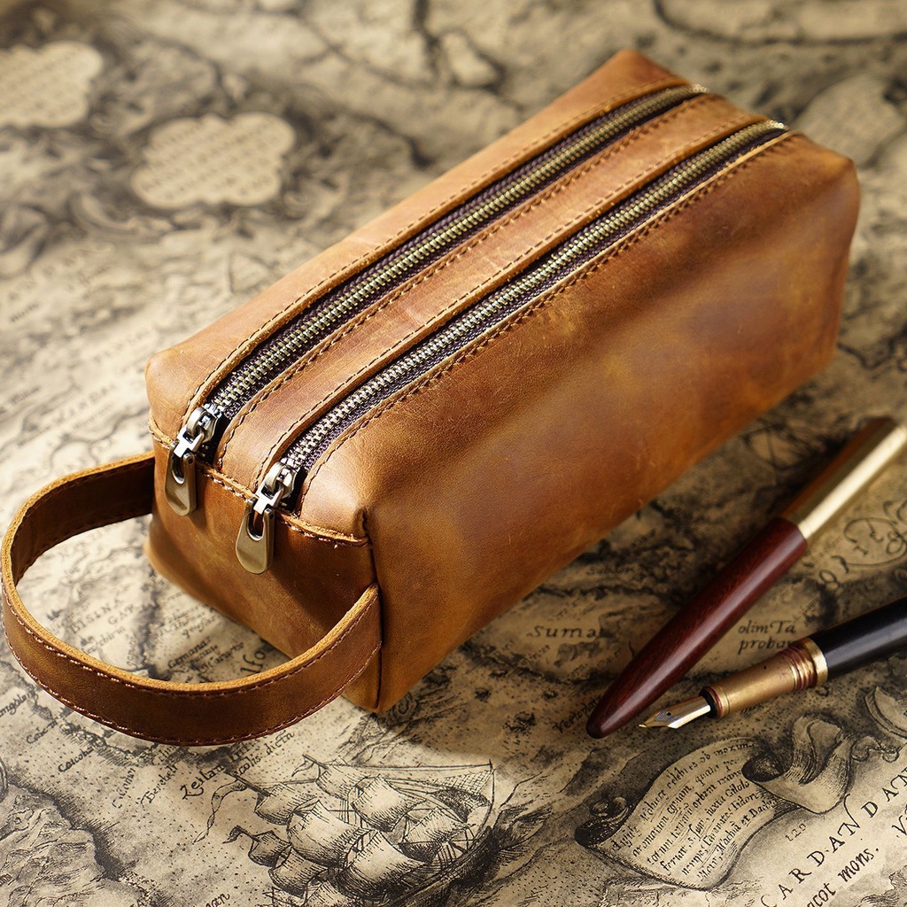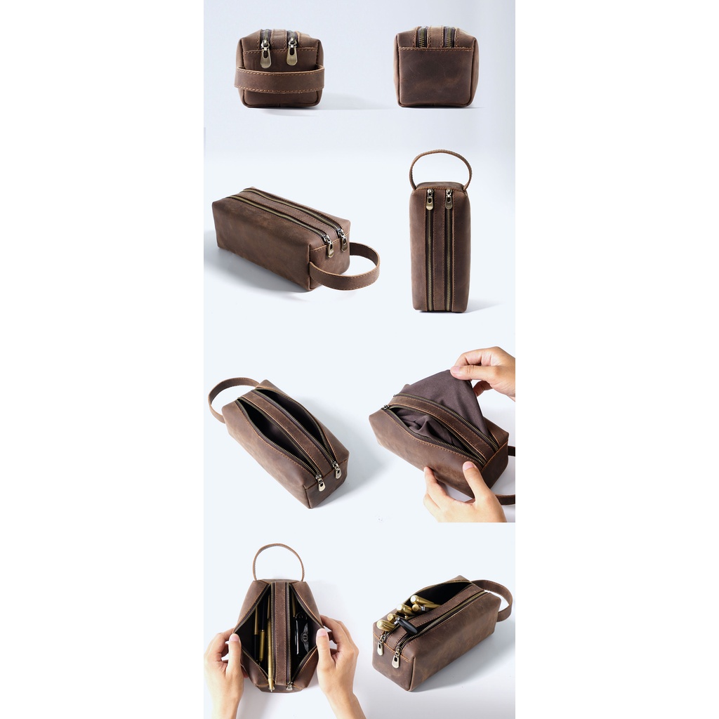 กระเป๋าดินสอ หนังวัวแท้ แบบสองชั้น แต่งซิป จุของได้เยอะ แบบเรียบง่าย สร้างสรรค์ เหมาะกับนักเรียนมัธยมต้น และมัธยมต้น และมัธยมปลาย สําหรับใส่เครื่องเขียน