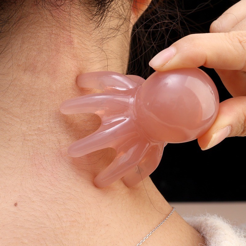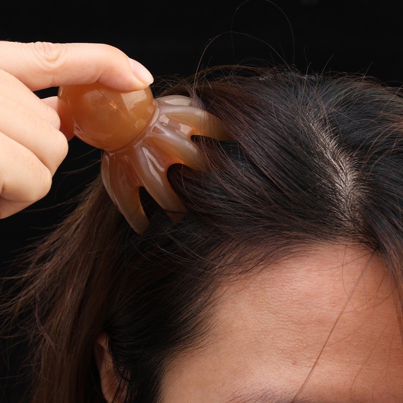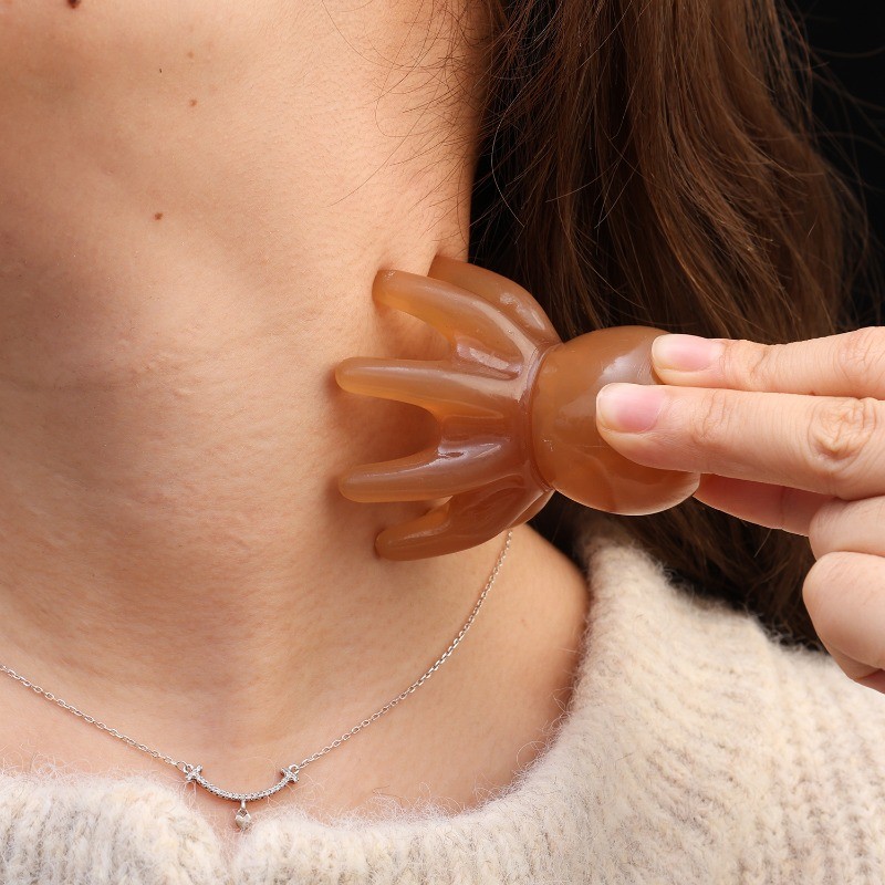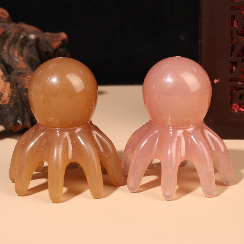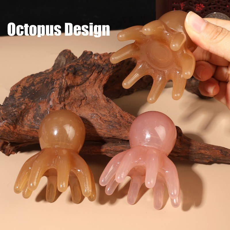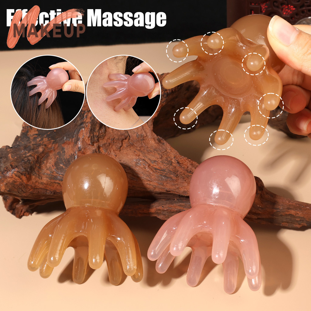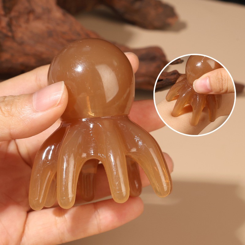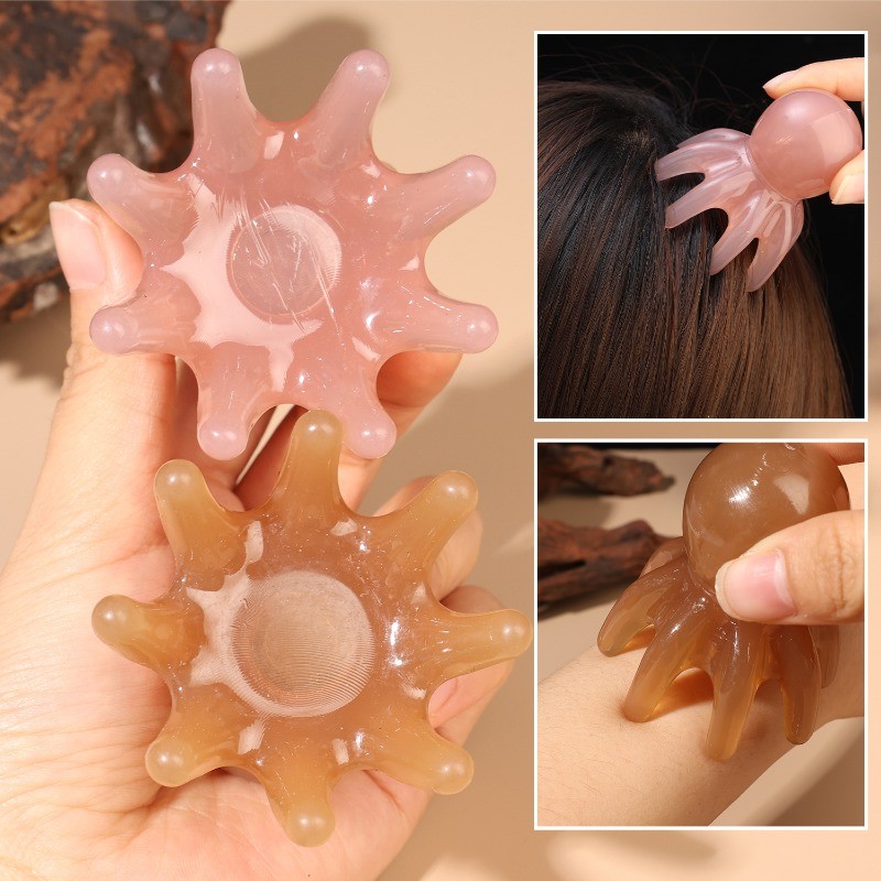 [ความงาม]1/2ชิ้น-เครื่องนวดหัวปลาหมึกยักษ์แบบพกพา7ซม.,หวีกดจุดเรซินธรรมชาติเพื่อบรรเทาความตึงเครียด2สี(สีแทน/อําพัน) การออกแบบผิวกระ