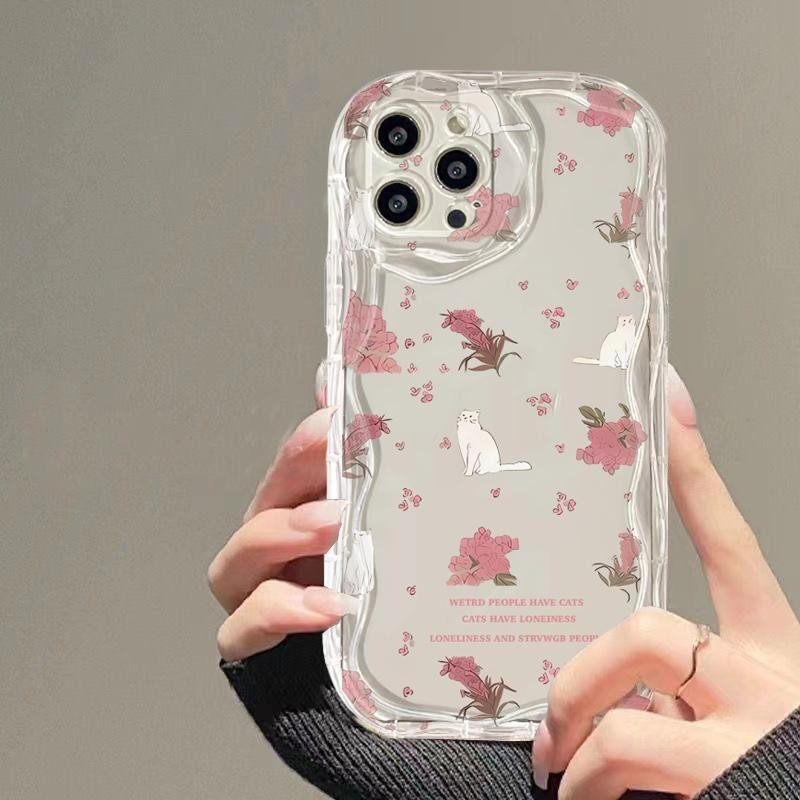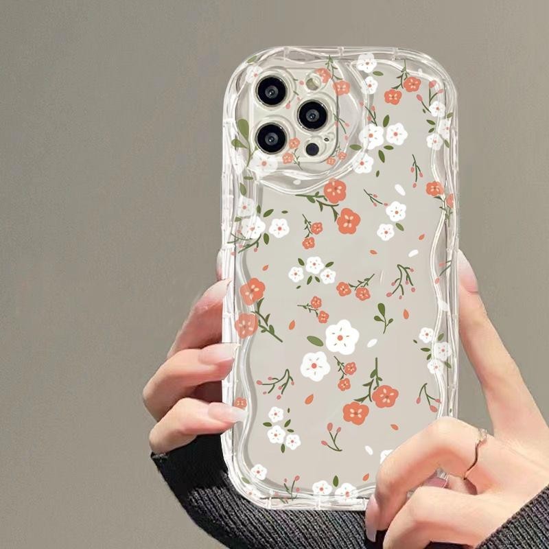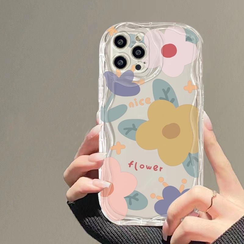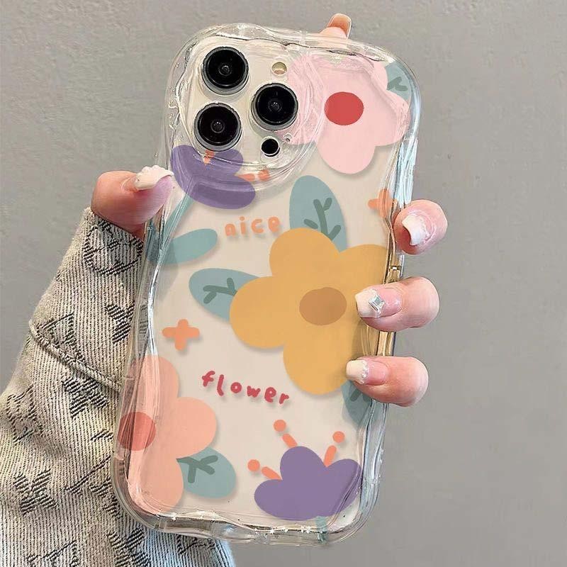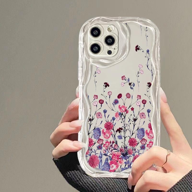 สําหรับ Vivo V30 V27 V23 V25 Pro V30E V29E V27E V23E V21E 3D หยักโค้งขอบดอกไม้สีสันหรูหราโปร่งใสนุ่มกันกระแทกเคสโทรศัพท์