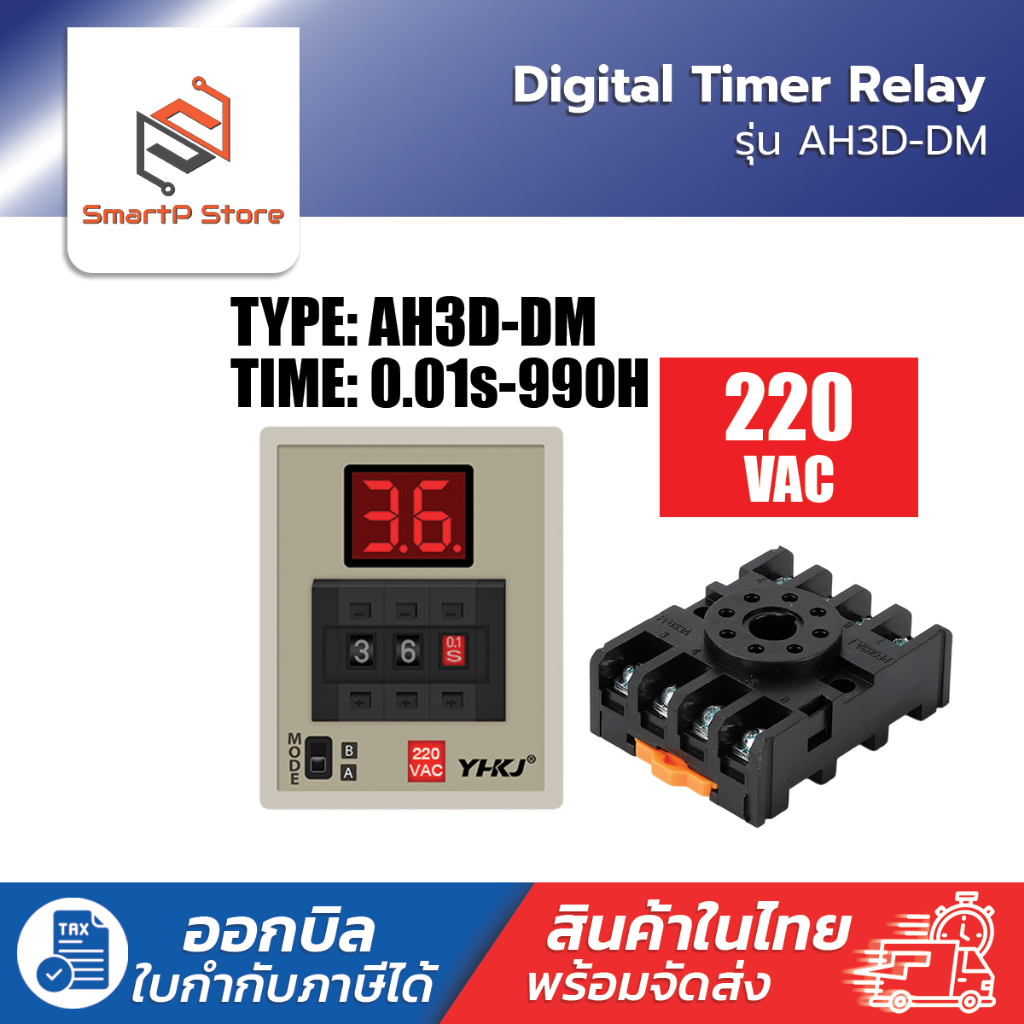 Digital Timer ไทม์เมอร์ ดิจิตอล รุ่น AH3D-DM AC220V DC12V 24V พร้อม Socket PF083A