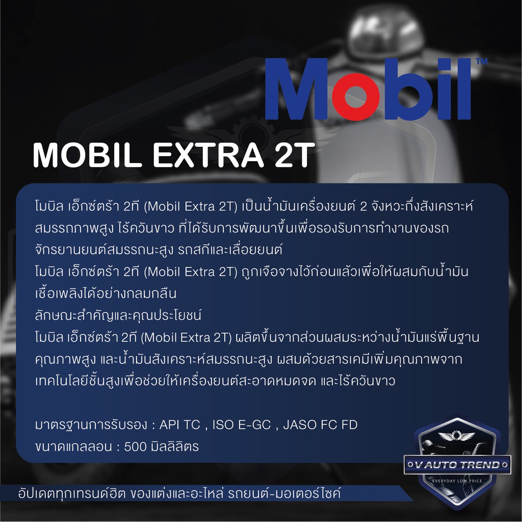 MOBIL Extra 2T ขนาด 0.5 ลิตร ออโต้ลูป น้ำมันเครื่องยนต์ 2 จังหวะ กึ่งสังเคราะห์สมรรถภาพสูง autolube autoloop โมบิล
