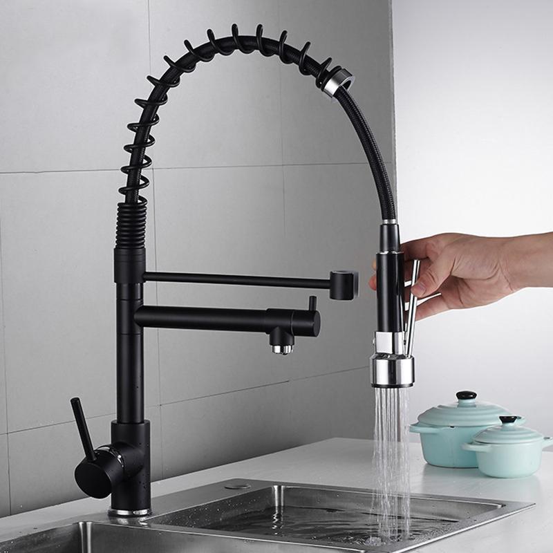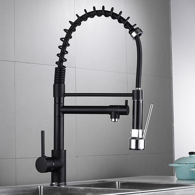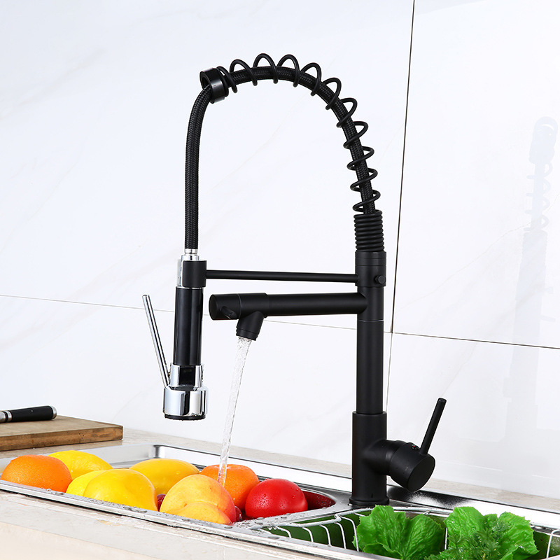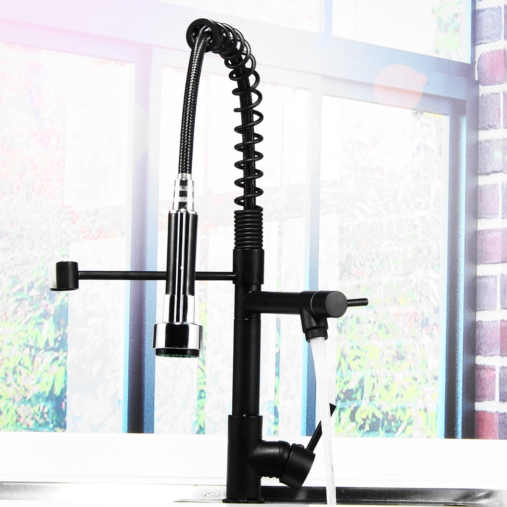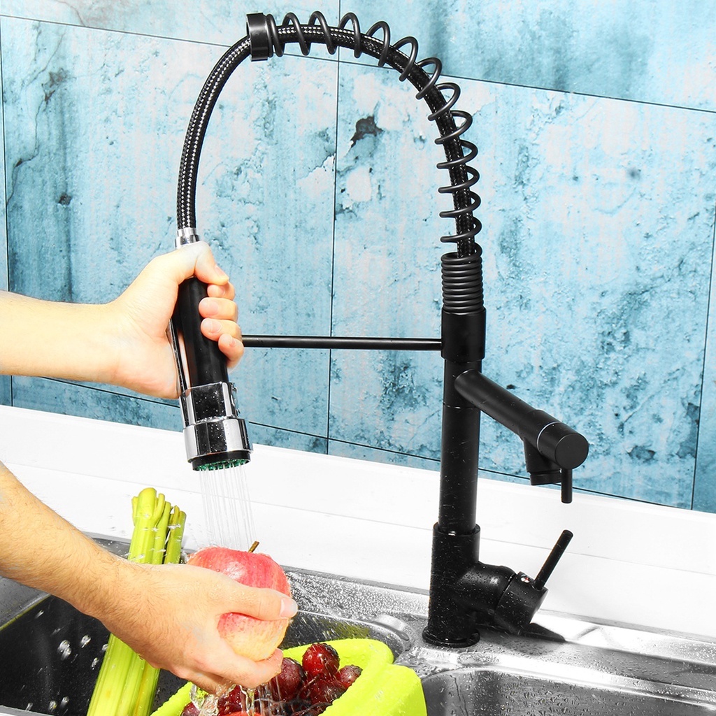 ก๊อกซิงค์น้ำผสม ก๊อกอ่างล้างจานสีดำ หัวฝักบัวสเปร์โยกได้360 หมุนได้ พร้อมหัวแยก ก๊อกน้ำห้องครัวมัลติฟังก์ชั่น