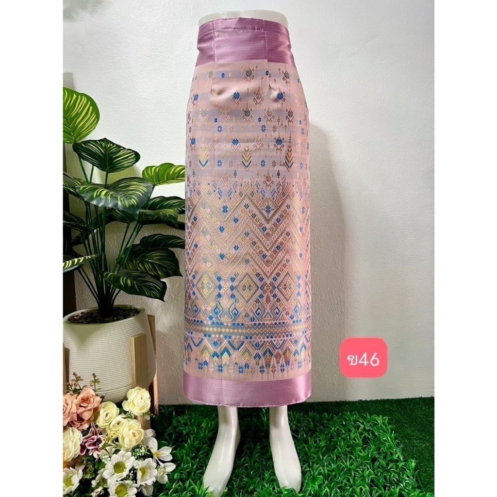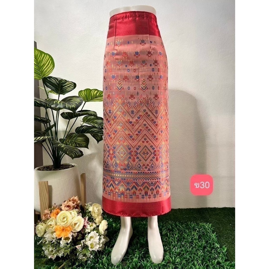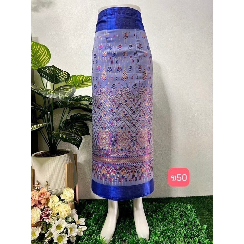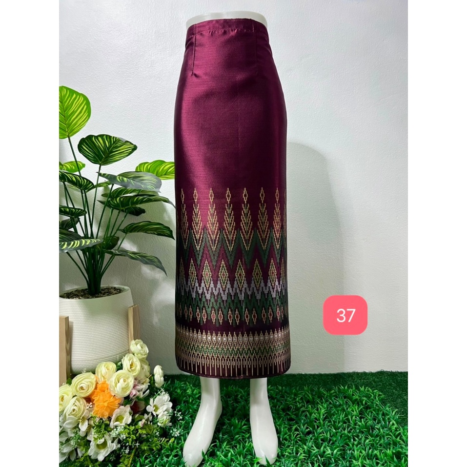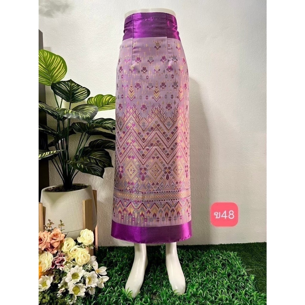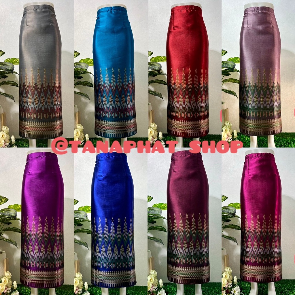 (ร้านTanaphat Shop)ผ้าซิ่นไหมไทยลาว สำเร็จรูป ป้ายข้างติดตะขอ