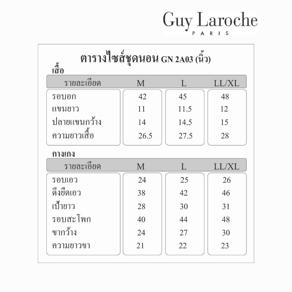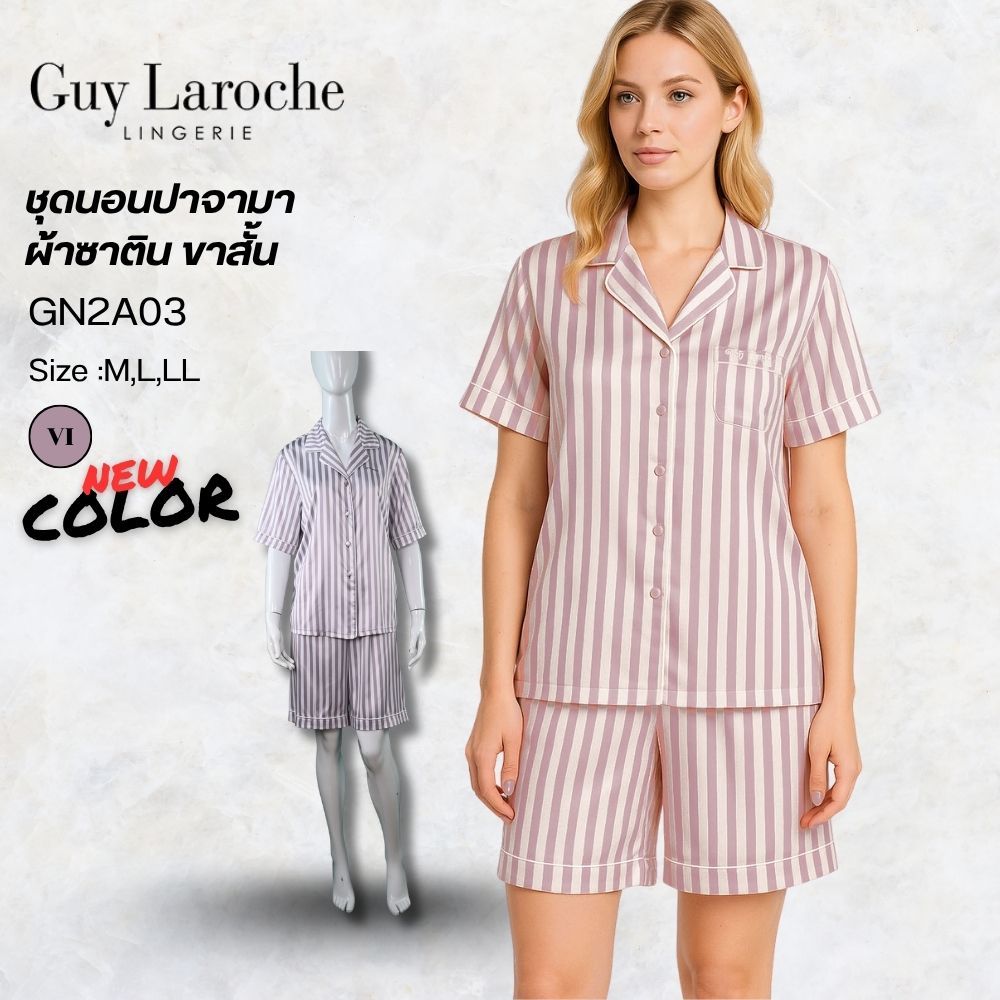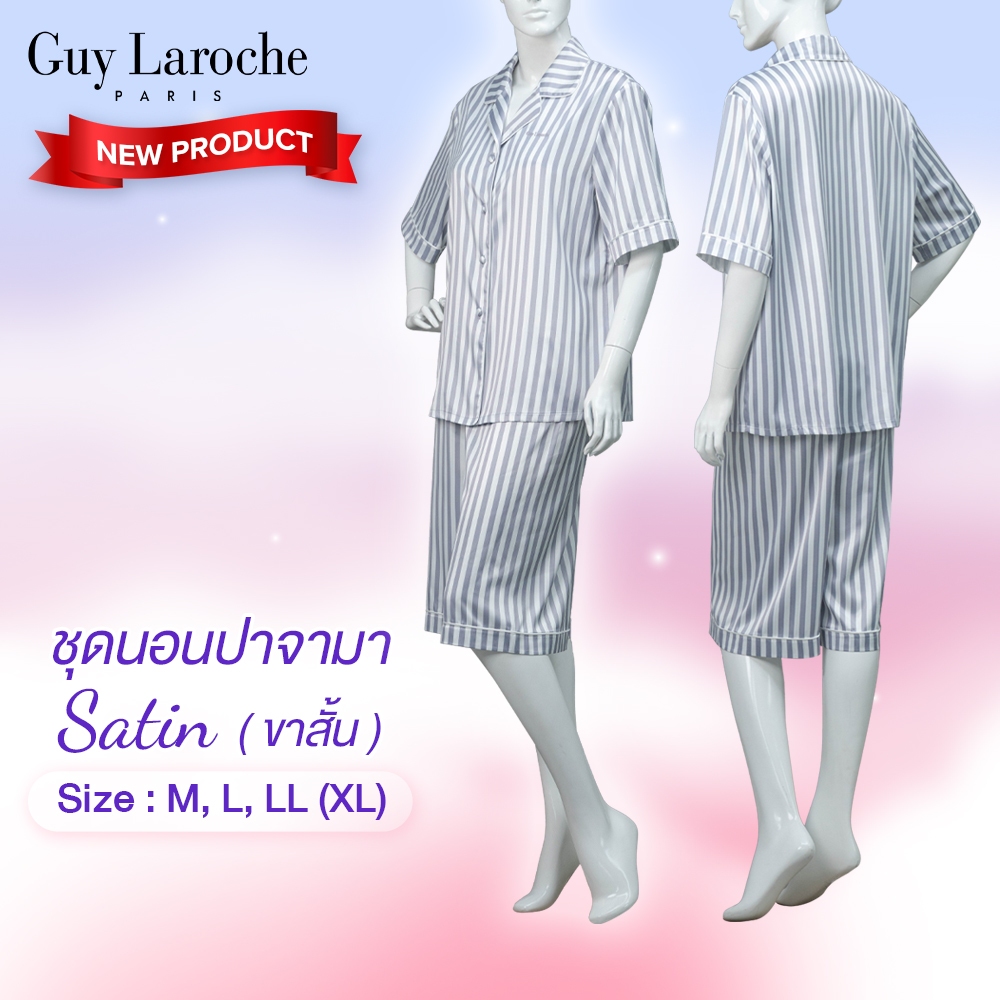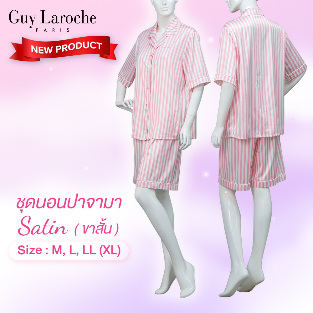Guy Laroche ชุดนอนผ้าซาติน Pajamas พิมพ์ลาย เนื้อนุ่ม ผิวสัมผัสเย็น เสื้อแขนสั้น +กางเกงขาสั้น รุ่น GN2A03