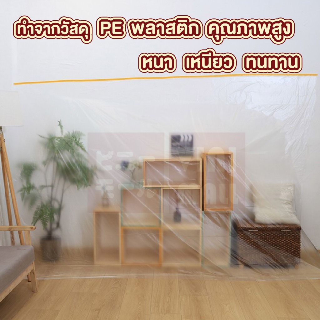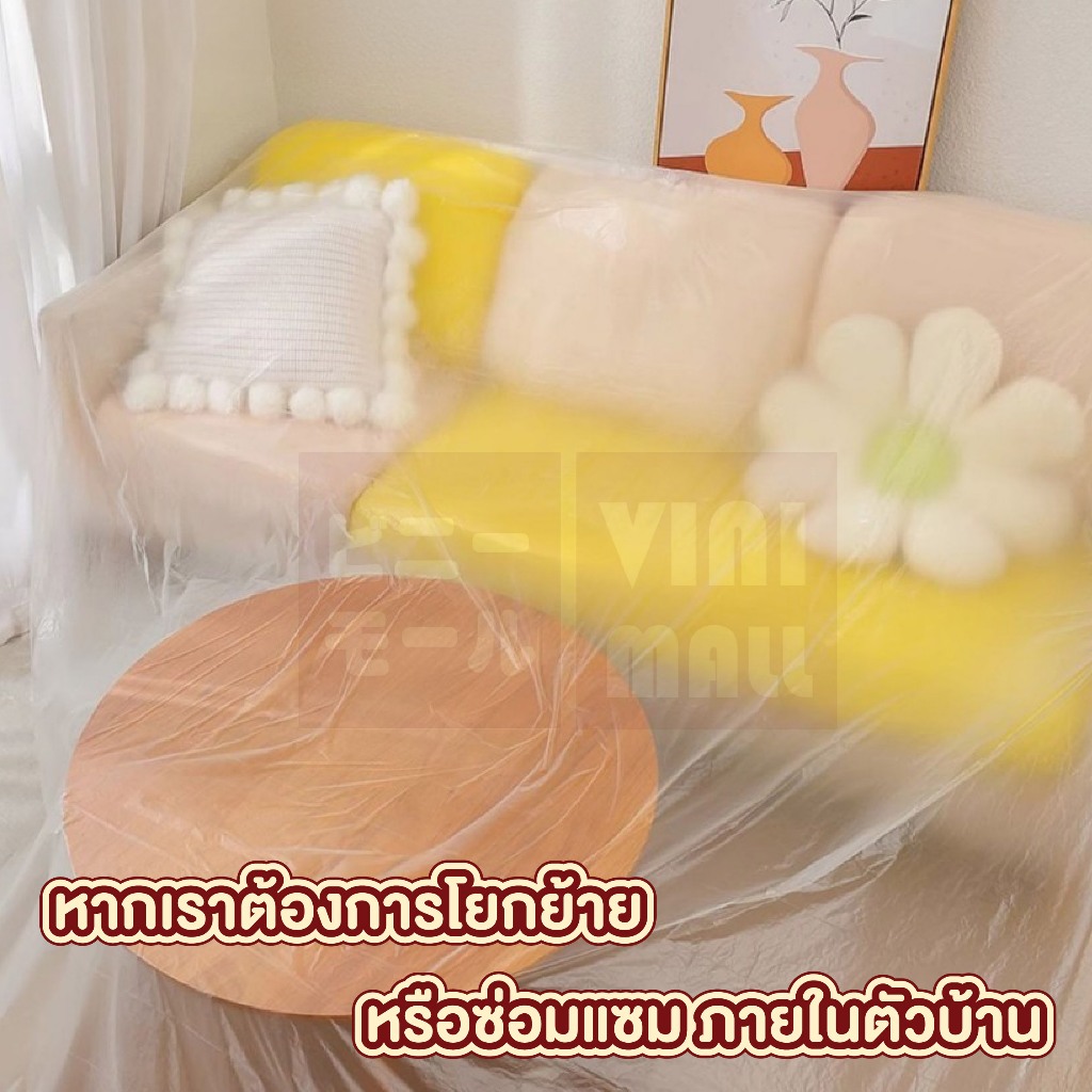 【VINIMALL คุณภาพดี】พลาสติกคลุมเฟอร์นิเจอร์ มีแทบกาว ยึดติดแน่น กันน้ำ กันฝุ่น คุณภาพดี S11 CTN435