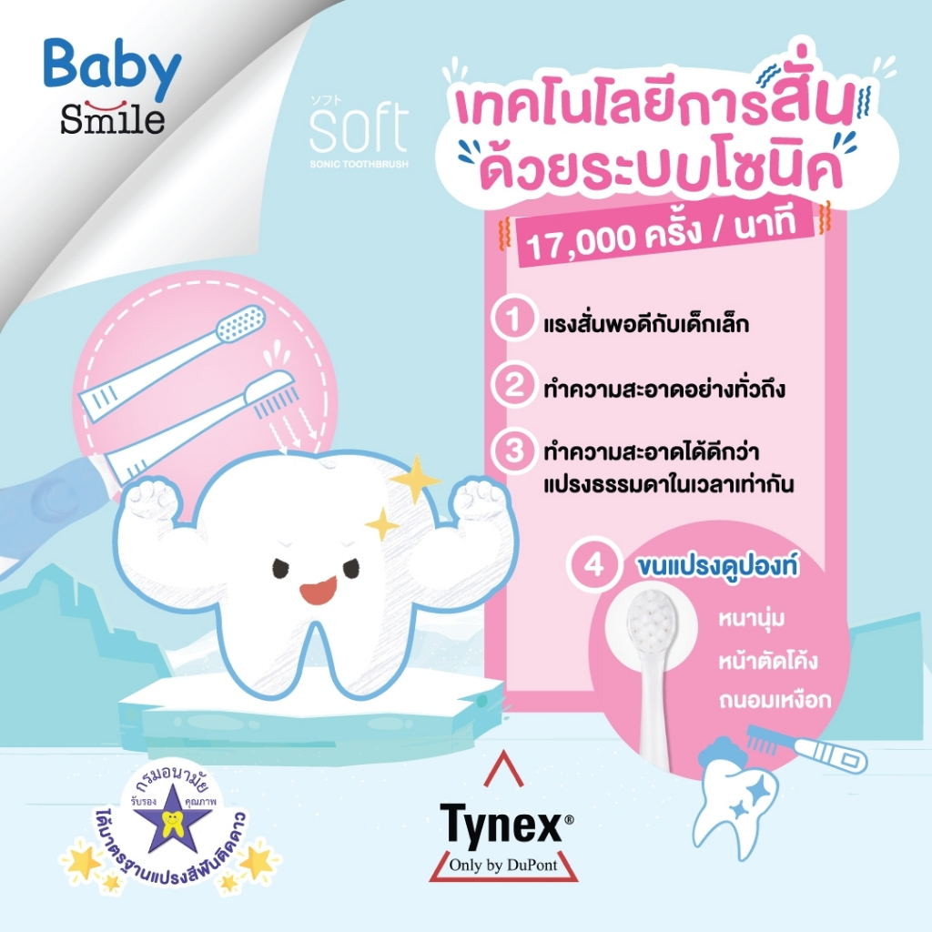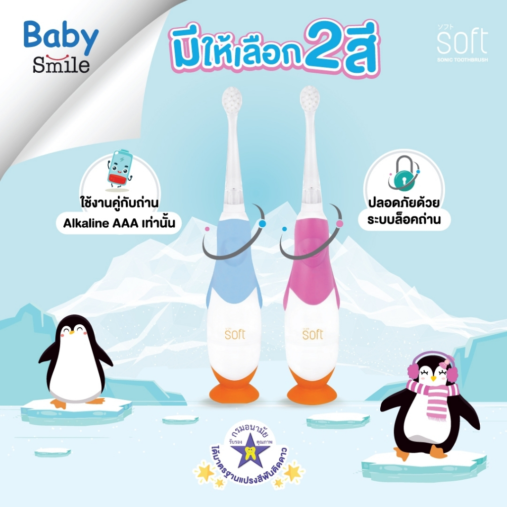 แปรงสีฟันไฟฟ้า SOFT Baby Smile 0-3ขวบ พร้อมหัวแปรงสำรอง 1ชุด(เลือกได้)