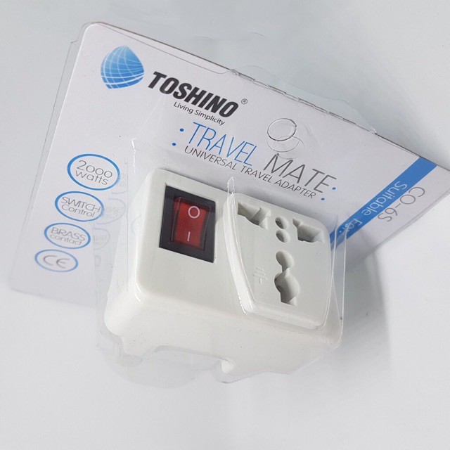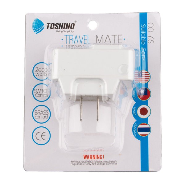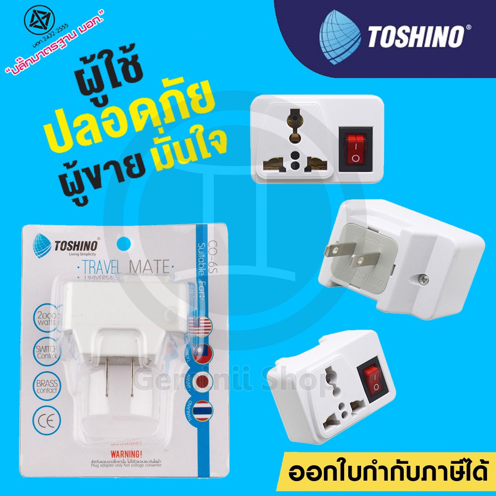 Toshino ปลั๊กแปลงขา 2 ขา แบน 1 ช่อง 1 สวิตท์ รุ่น CO-6S