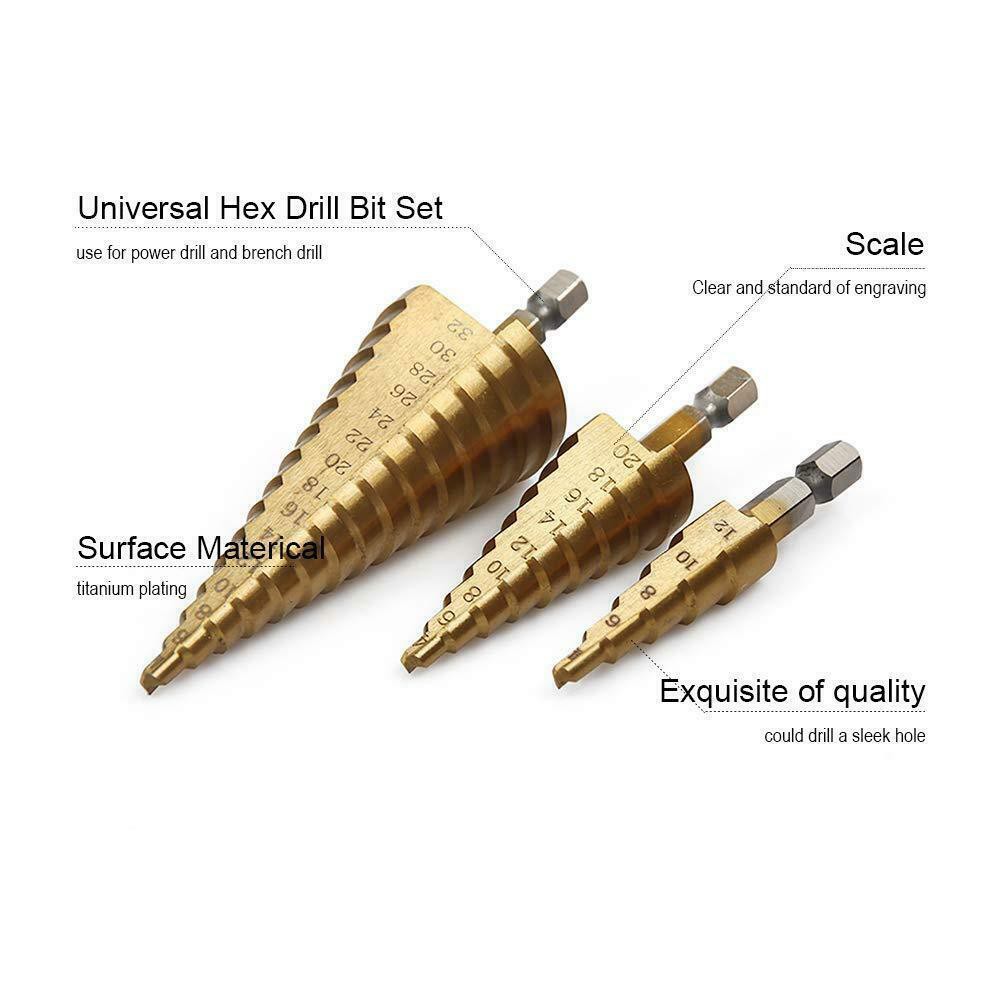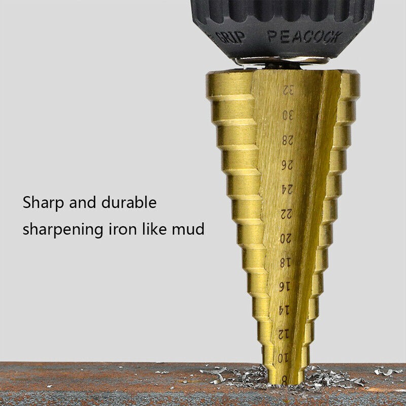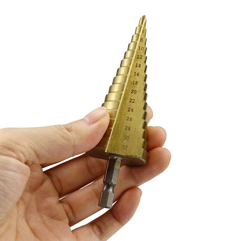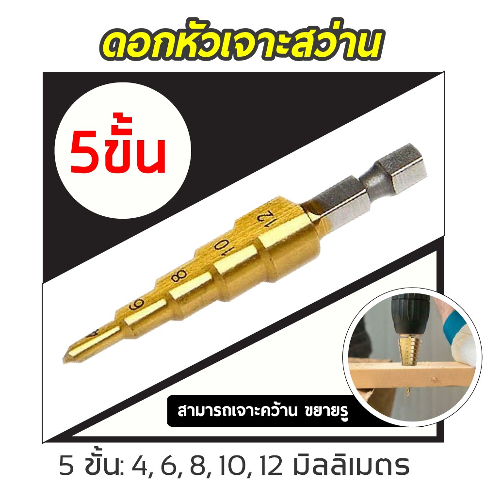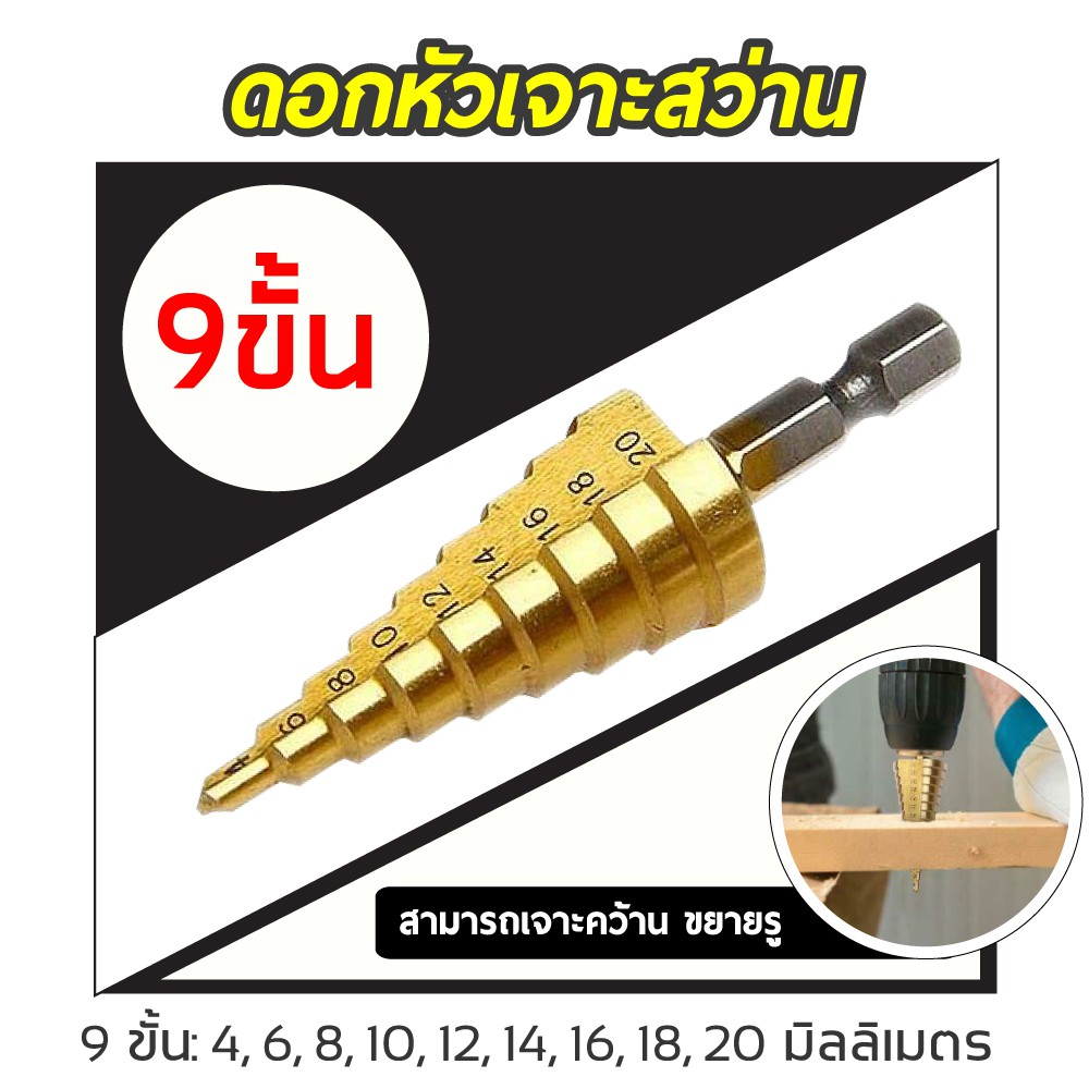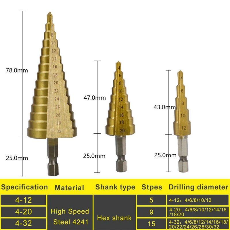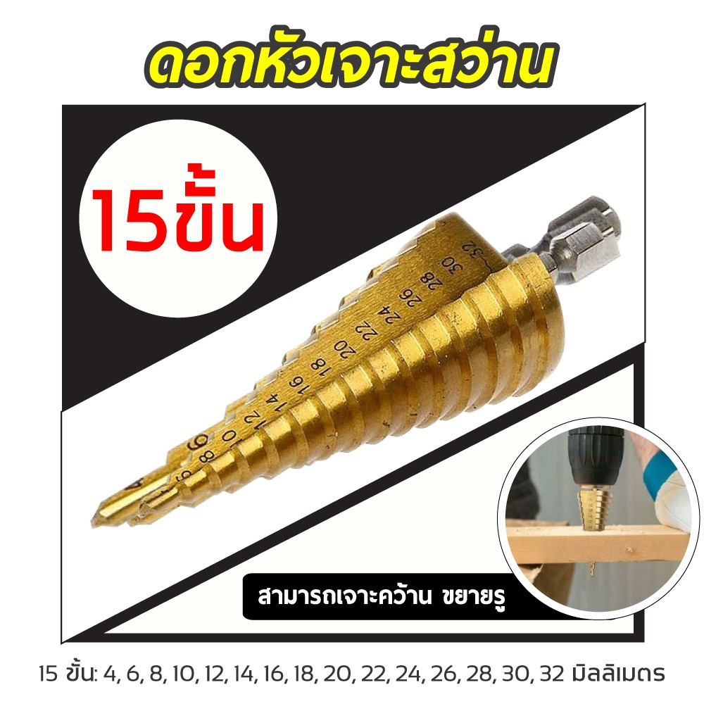 ดอกสว่าน ทรงเจดีย์ เจาะขยาย คว้านรู เคลือบไทเทเนี่ยม ดอกใหญ่ ขนาด 4-32/4-20/4-12