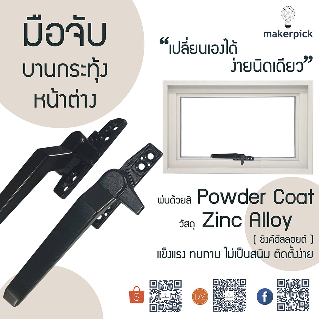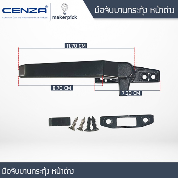 มือจับบานกระทุ้ง Cenza มือจับล็อค หน้าต่าง สีดำ