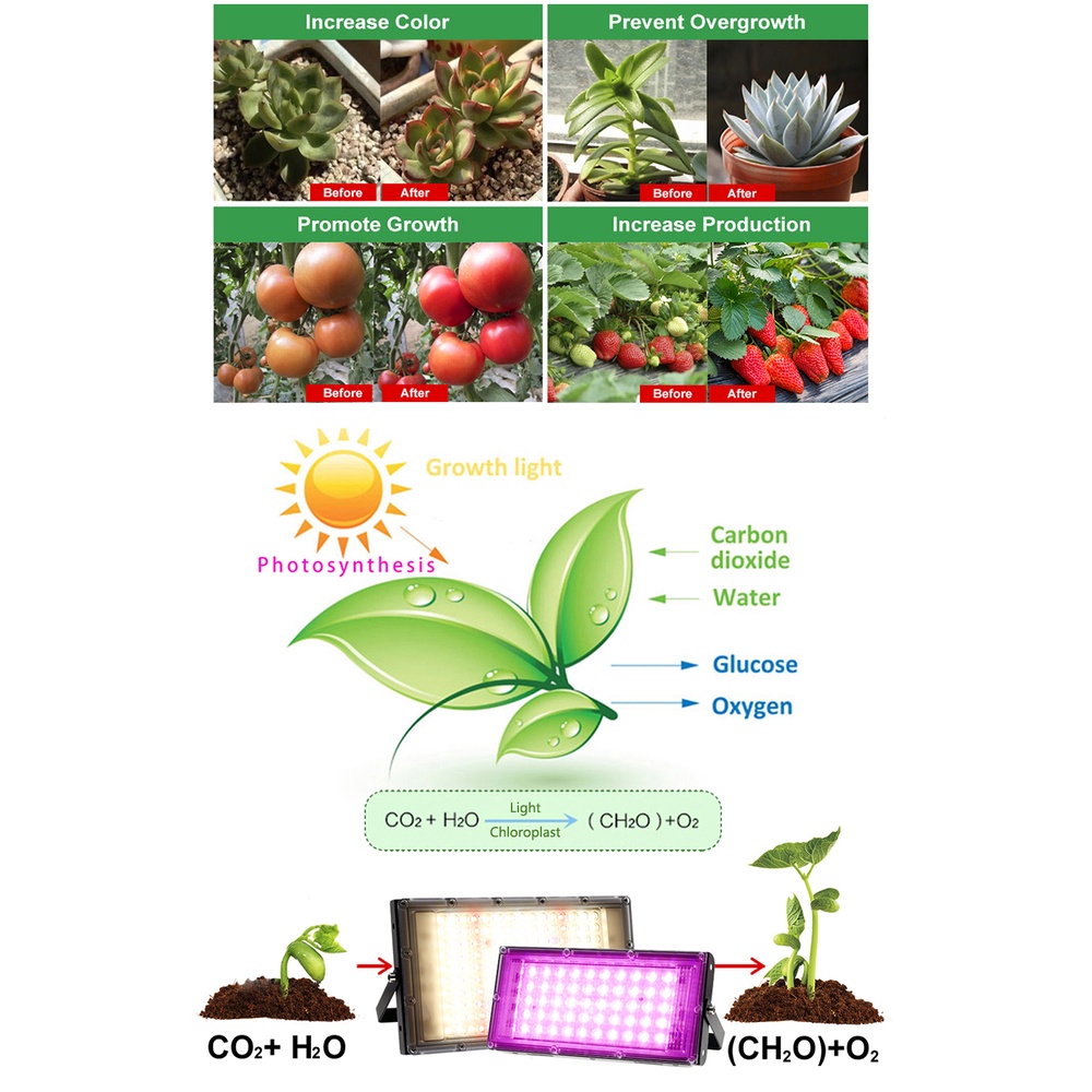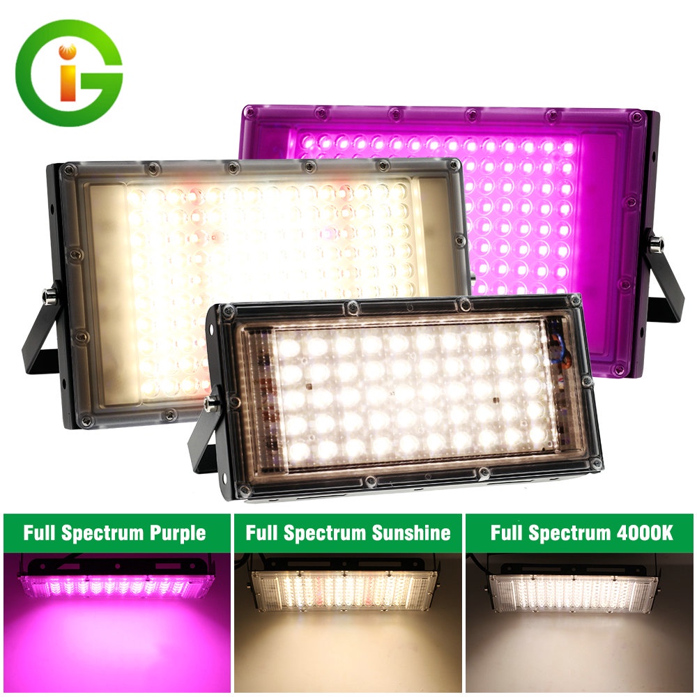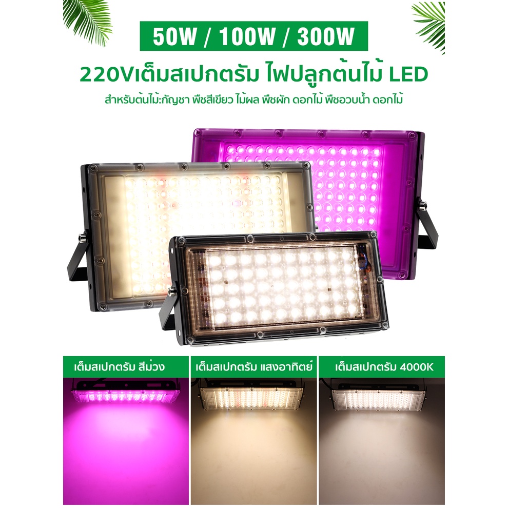 ไฟปลูกต้นไม้ LED Grow Light 50W 100W 300W กันน้ำได้ พร้อมสวิตช์เปิด/ปิดสำหรับดอกไม้ต้นกล้า ไม่กลัวฝนและหมอก แสงดี