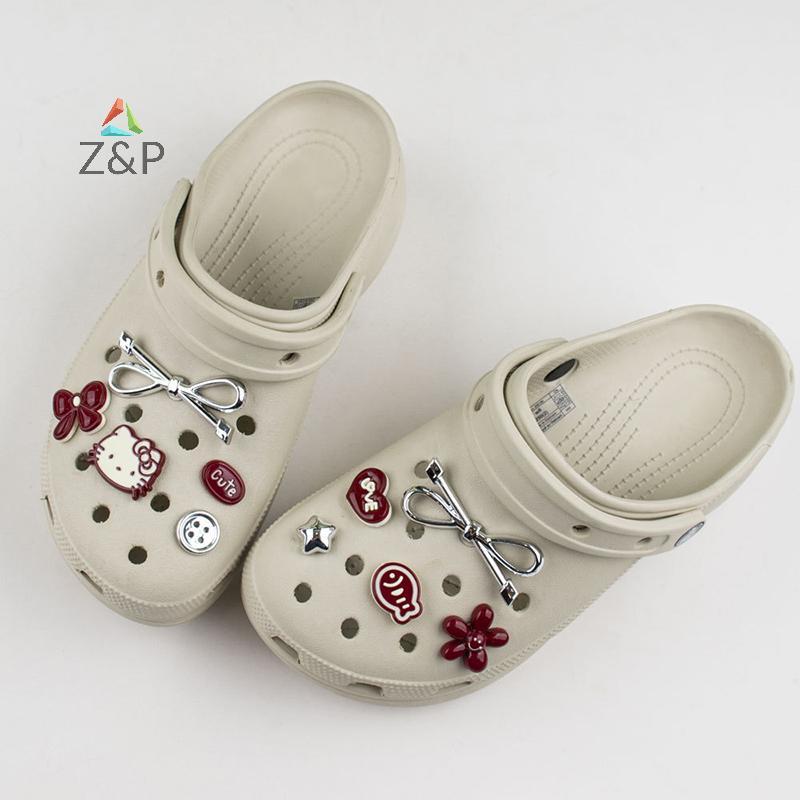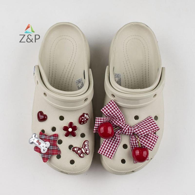 Z & P 1 ชุด DIY รองเท้าตกแต่ง Bowknot Red Series รองเท้า Charms Kit สําหรับ Clogs & รองเท้าแตะ Xmas ของขวัญ COD