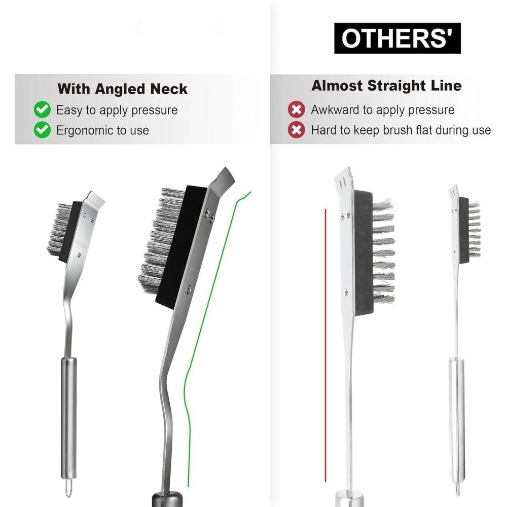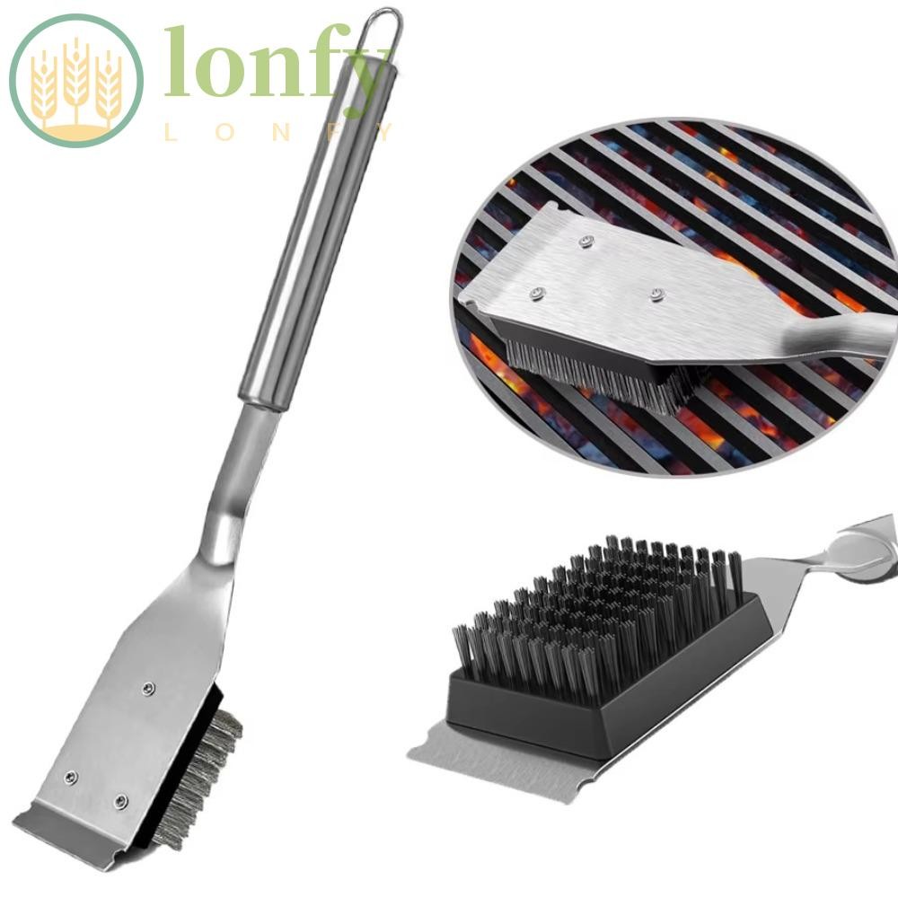 LONFY แปรงย่างบาร์บีคิว สแตนเลสแปรงทำความสะอาดเตาย่าง แปรงขัดลวดเหล็กทนทานพร้อมแหวนแขวน อุปกรณ์บาร์บีคิว
