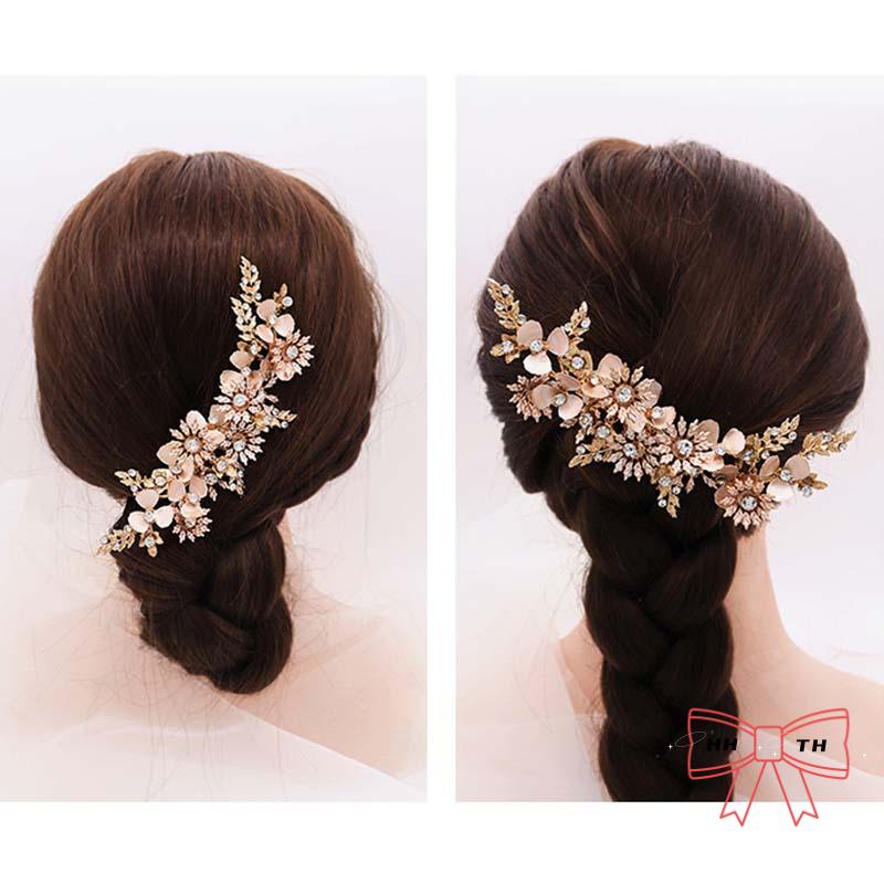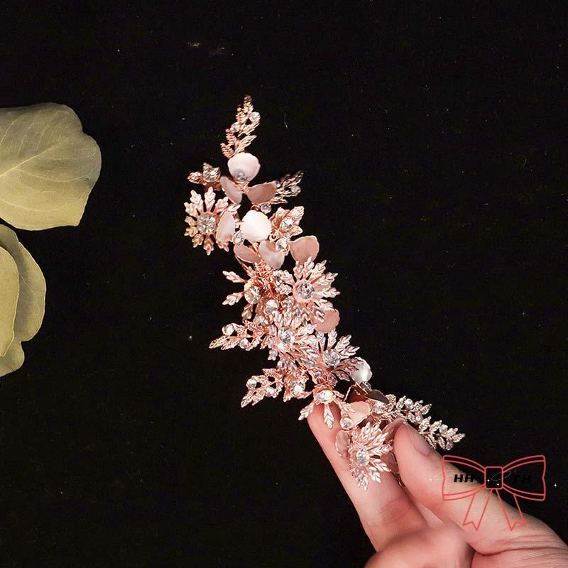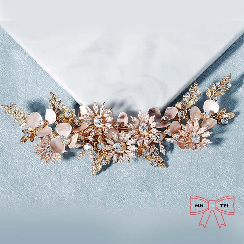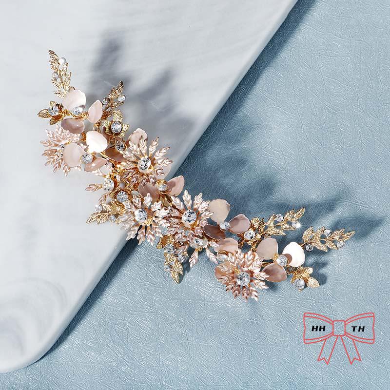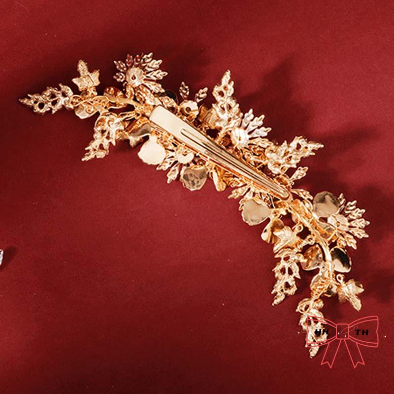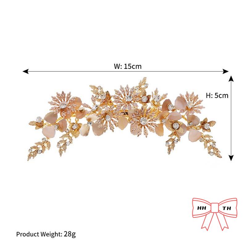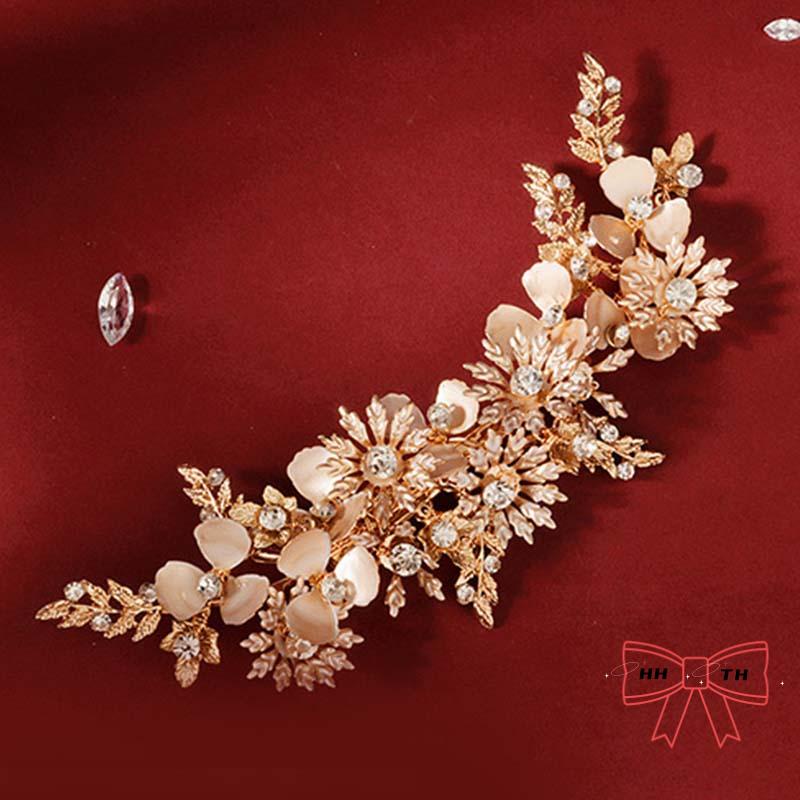 กิ๊บติดผม รูปดอกไม้ ใบไม้ สีทอง ประดับพลอยเทียม แฮนด์เมด สไตล์เรโทร สําหรับเจ้าสาว