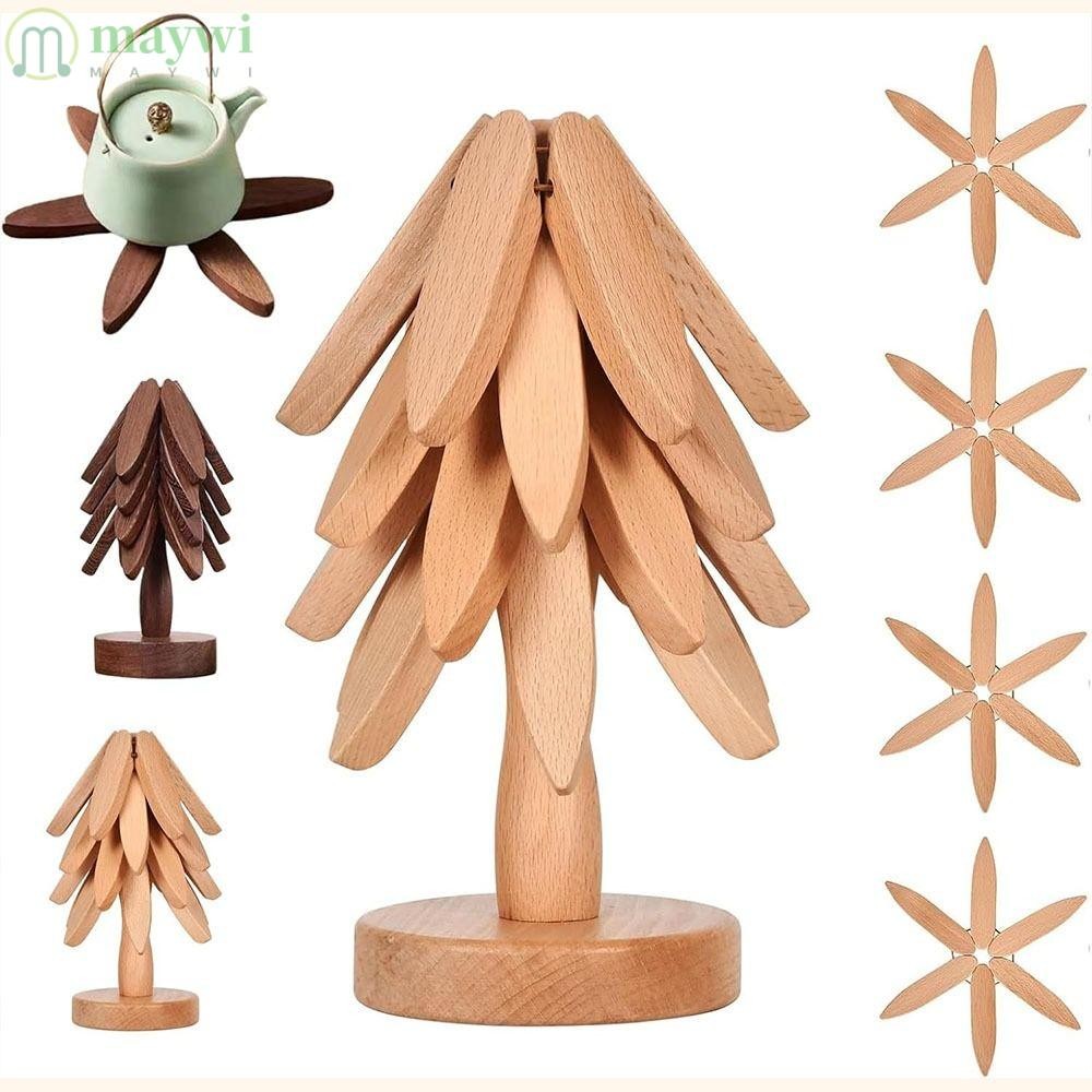 MAYWI 3/4ชิ้น ที่รองแก้วออกแบบต้นไม้ ป้องกันน้ำร้อนลวก ทนความร้อน เครื่องประดับในครัวเรือน