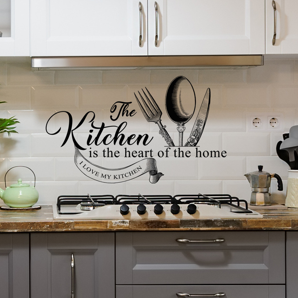 สติกเกอร์วอลล์เปเปอร์ ลาย the Kitchen Is the Heart of the Home มีกาวในตัว สําหรับตกแต่งผนังห้องครัว