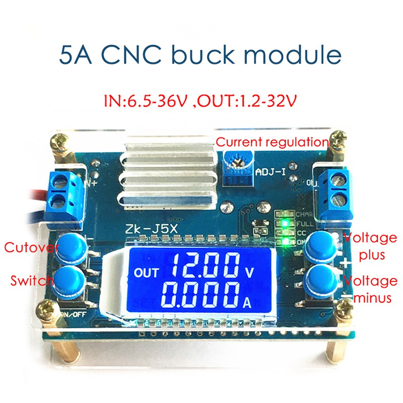 Cc CV DC 6.5-36V ถึง 1.2-32V 5A 75W สเต็ปดาว์นบัค แปลงพาวเวอร์ซัพพลาย โมดูลควบคุมแรงดันไฟฟ้า หม้อแปลง พร้อมเคสฮีทซิงค์