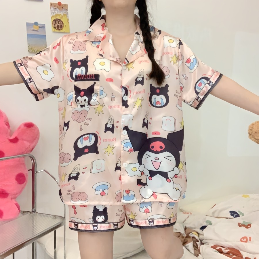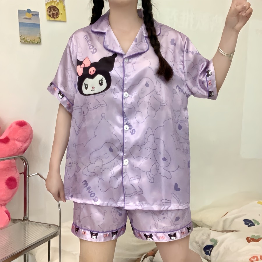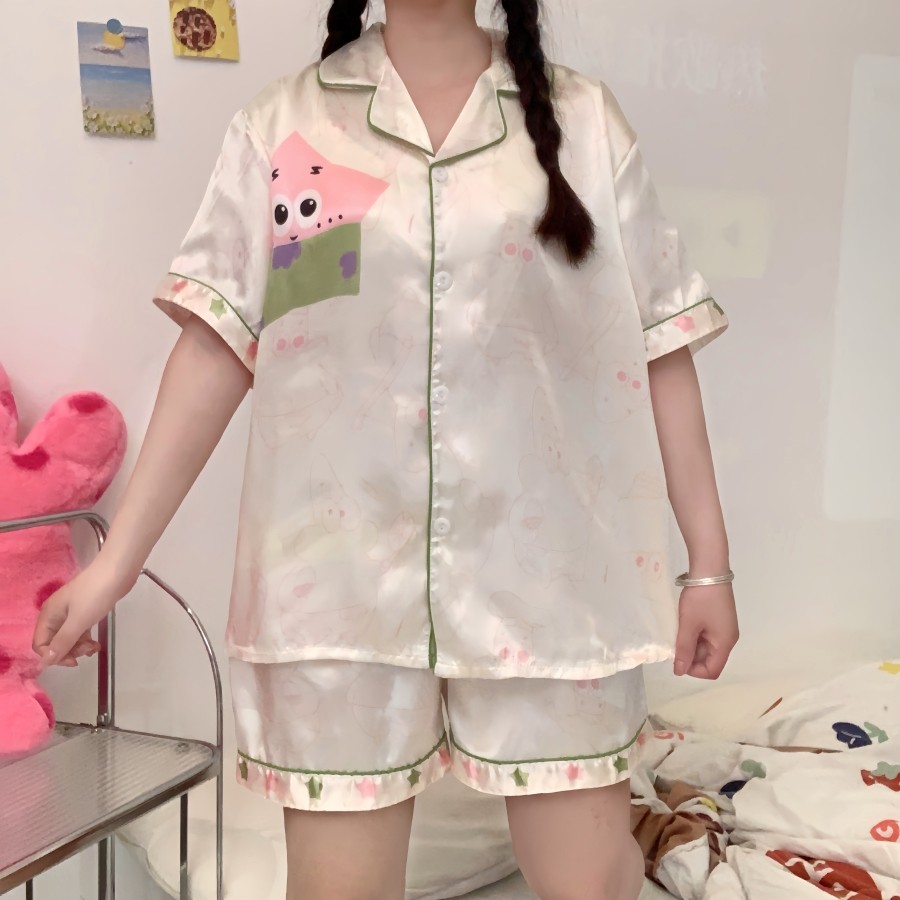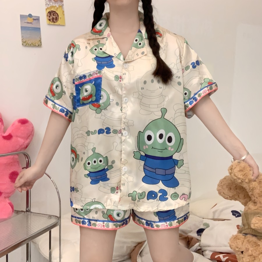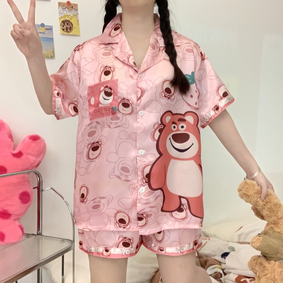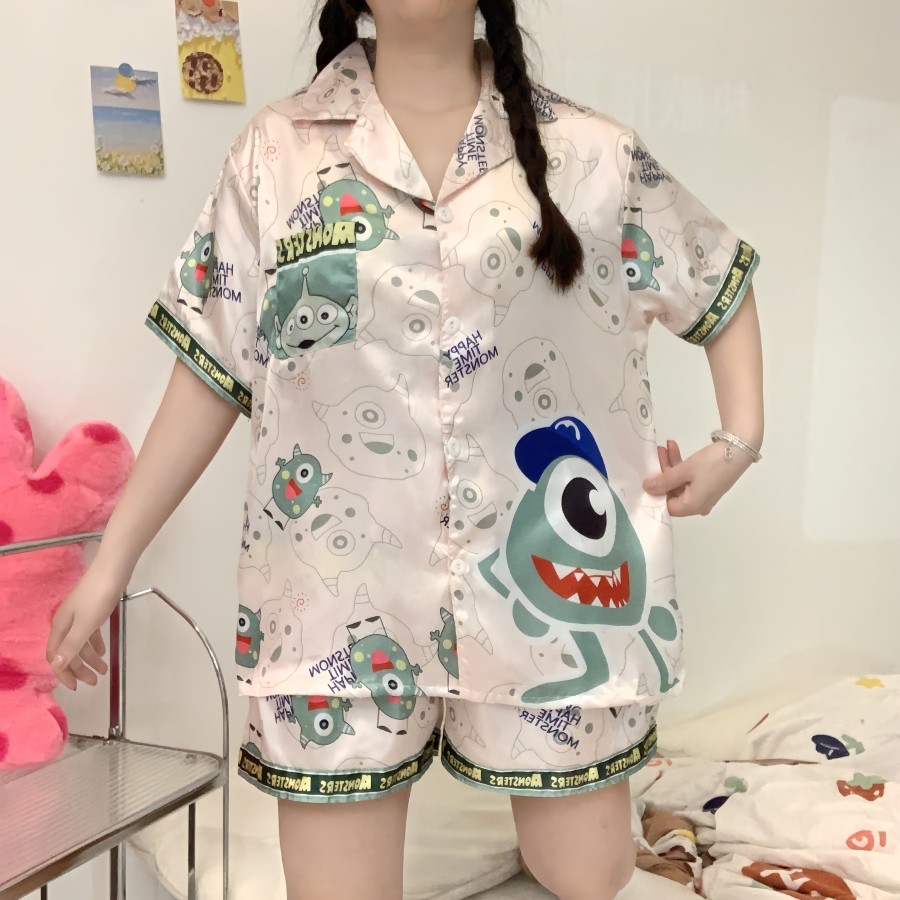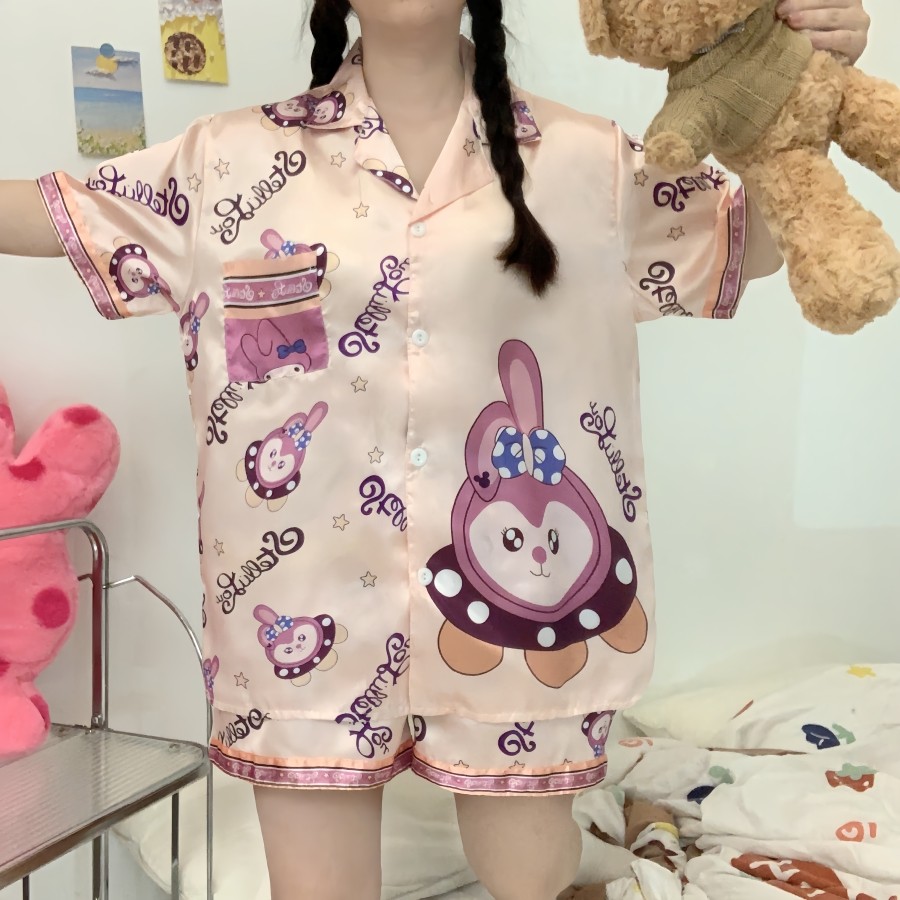 388 SPS ชุดนอนผู้หญิง ชุดนอนOne size อก40โดยประมาณ ชุดนอนสาวอวบผ้าไหมอิตาลี่ ลายการตูนน่ารักๆ พร้อมส่ง