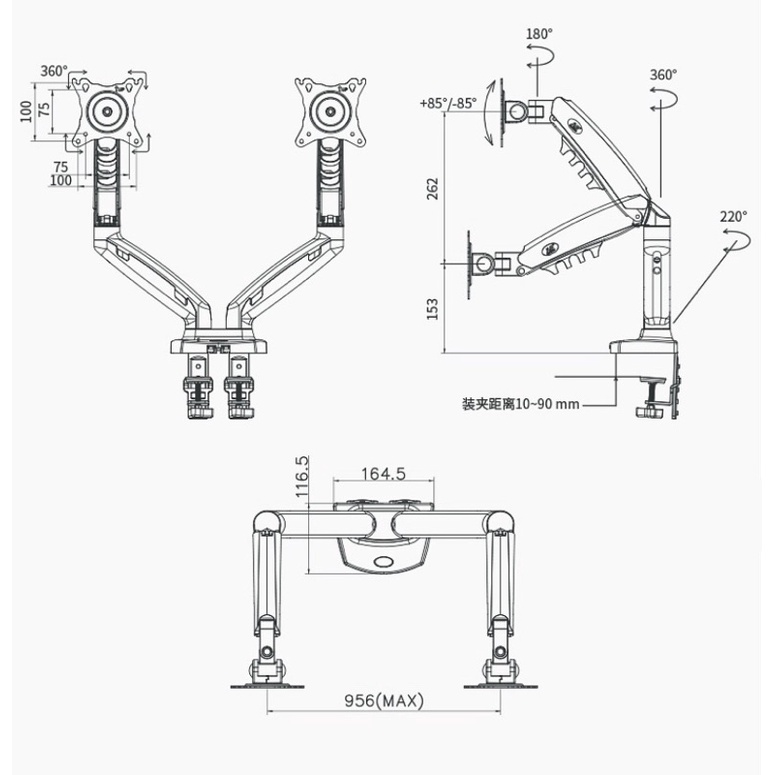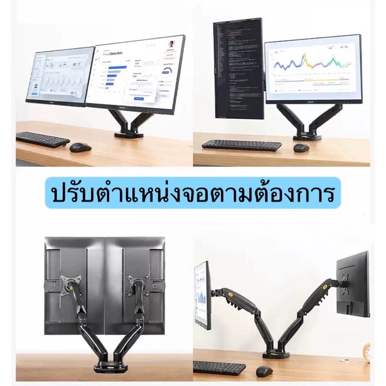 F160 ขาตั้งจอคอม ขาตั้ง2จอ NB17-27”หมุนจอได้360องศา Dual arm monitor