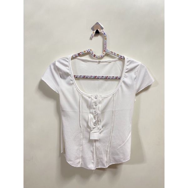 เสื้อยืดขาวรัดรูป มีกระดุมหน้า