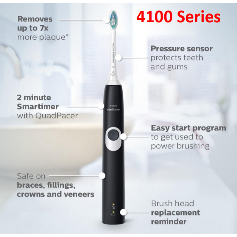 ฟิลิปส์ โซนิค แปรงสีฟันไฟฟ้า ทําความสะอาด ป้องกันเหงือก 4100 5100 6100 ชาร์จไฟได้ พร้อมเซนเซอร์แรงดัน