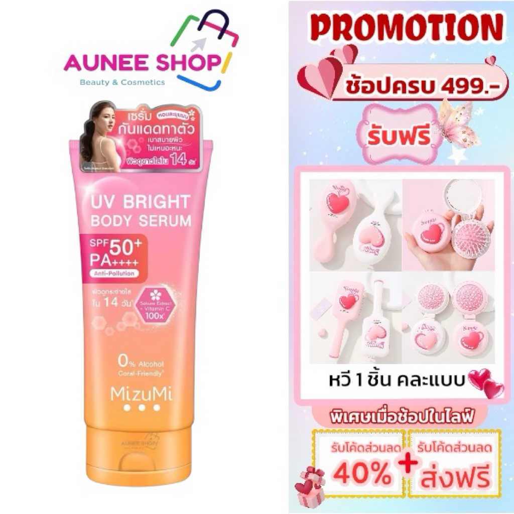 ส่งฟรี/มีไลฟ์ Mizumi เซรั่มกันแดดทาผิวกาย มิซึมิ เบาสบายผิว หอมละมุน MizuMi UV Bright Body 180 ml.
