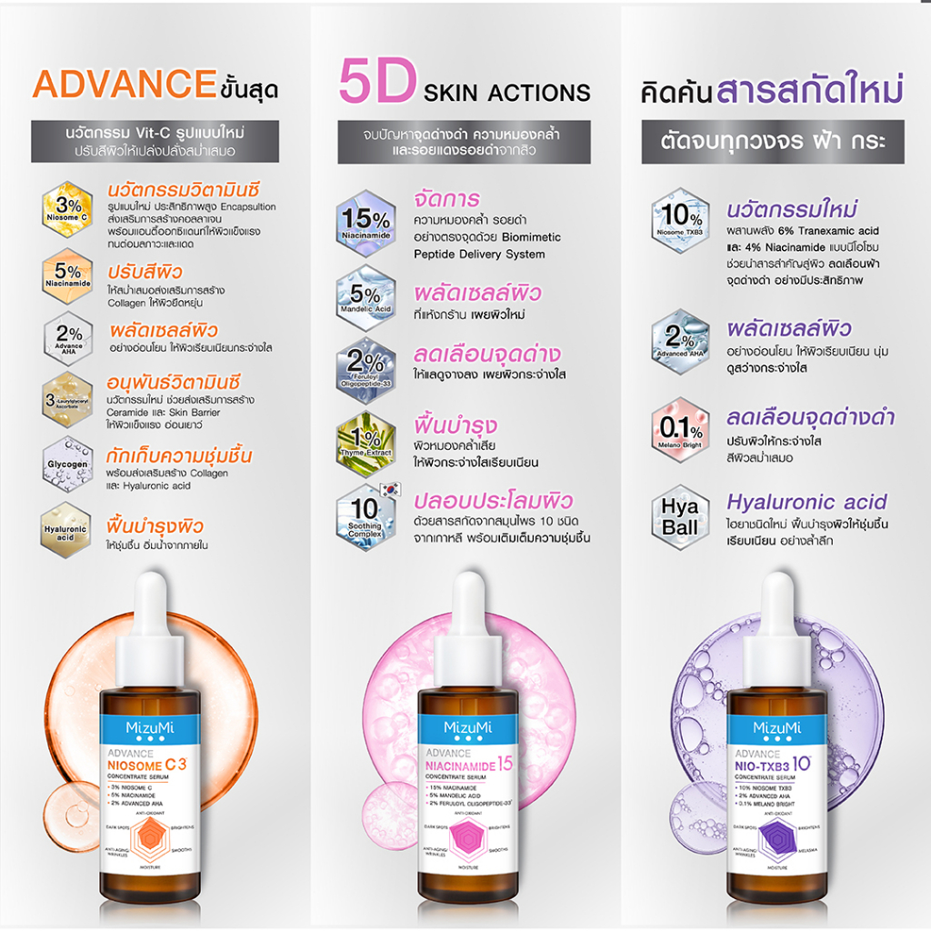 ส่งฟรี/มีไลฟ์ (ขวด) MizuMi มิซูมิ มี 3 สูตร เซรั่มไนอะซินาไมด์/เซรั่มนีโอโซมซี/เซรั่มฝ้า /เรตินอล/ ไฮยา