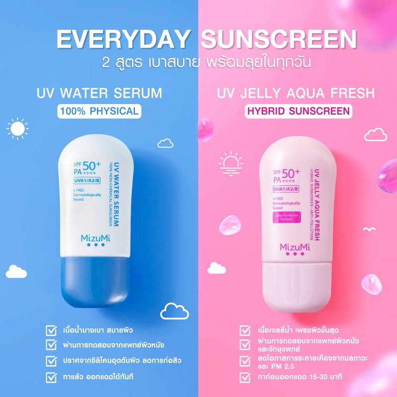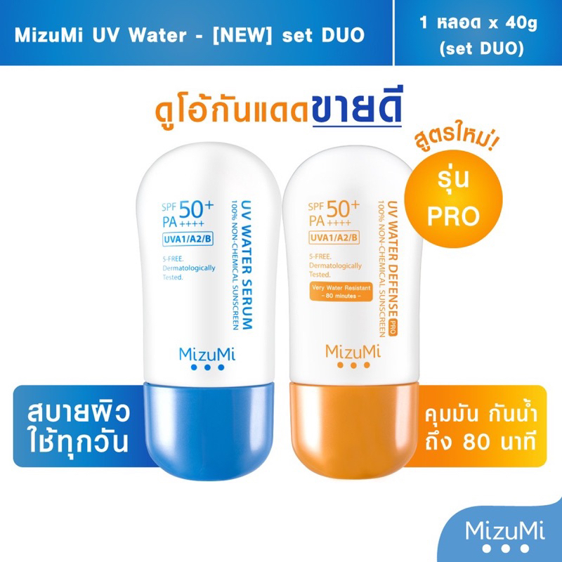 ส่งฟรี/มีไลฟ์ (ซื้อ 2 ชิ้น มีของแถมฟรี) MizuMi UV Water Defense Pro/UV Water Serum SPF50+ PA++++