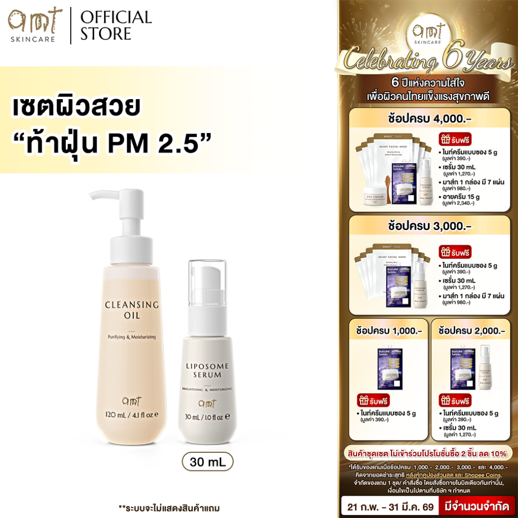 เซตผิวสวย ท้าฝุ่น PM 2.5 - Cleansing oil & Liposome Serum 30 mL (เหมาะสำหรับทุกสภาพผิว)