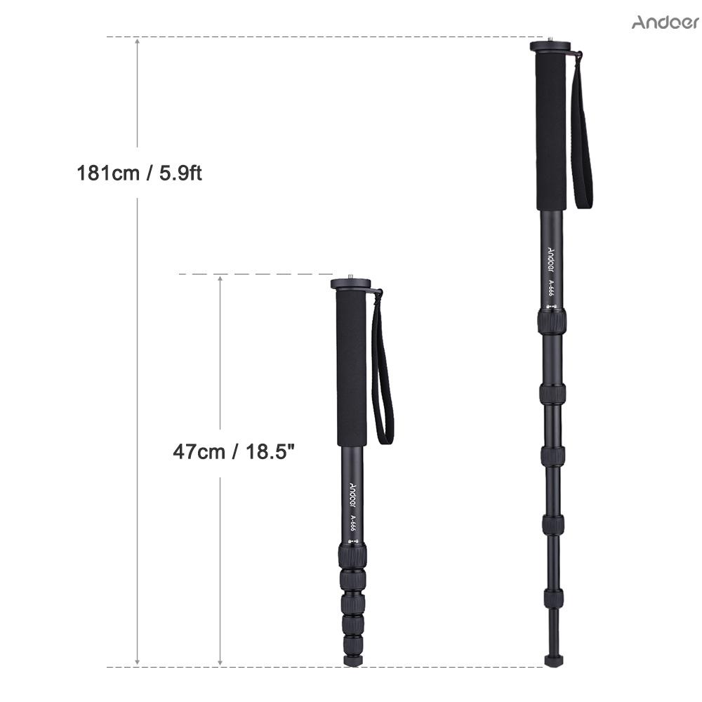 Andoer A-666 181cm/5.9ft ขาตั้งกล้องอลูมิเนียม 6 ส่วน 10 กก. / 22 ปอนด์พร้อมกระเป๋าสําหรับกล้องวิดีโอถ่ายภาพ