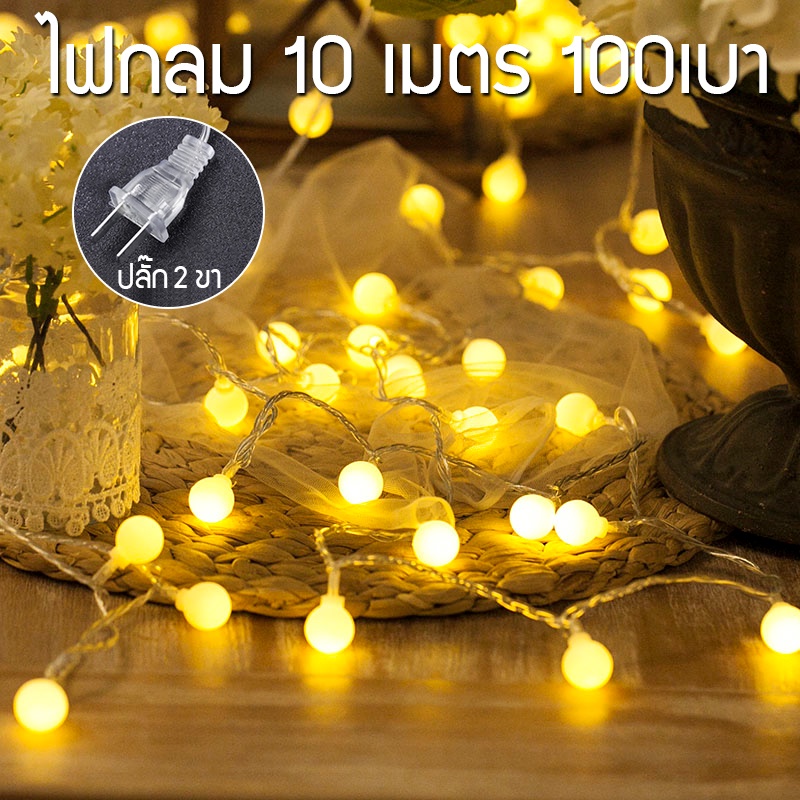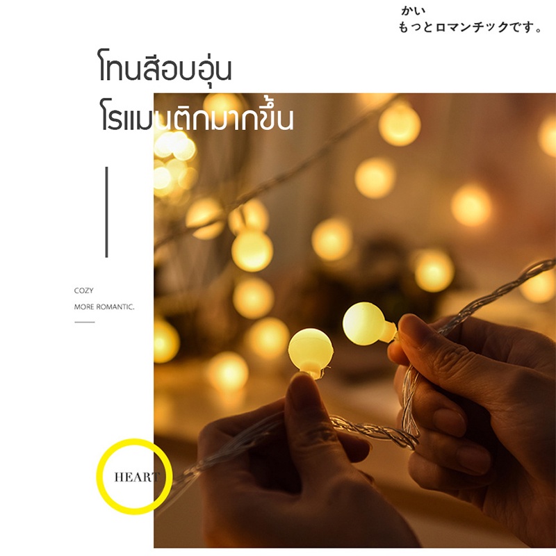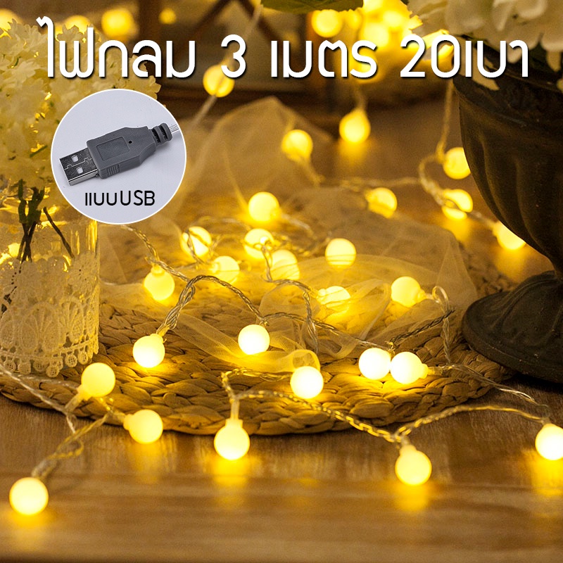 🍒ไฟเชอรี่🔥ไฟประดับตกแต่งเต็นท์LED แบบUSB ยาว 6 เมตร 40 ดวง ไฟกระพริบ ไฟประดับห้อง ไฟปิงปอง ไฟกลม ไฟประดับเต็นท์
