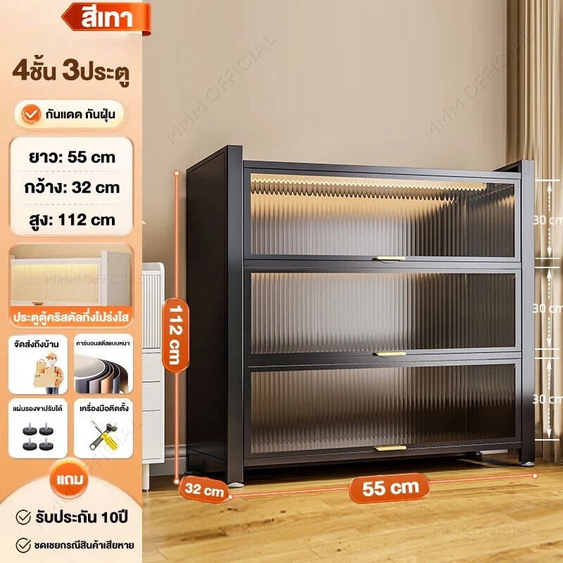 MMM ตู้เก็บของ กันฝุ่น กันแมลง 3/4/5/6ชั้ น เหล็กคาร์บอน ประตูอะคริลิคใส เก็บจานชาม กันน้ำ ไม่เป็นสนิม