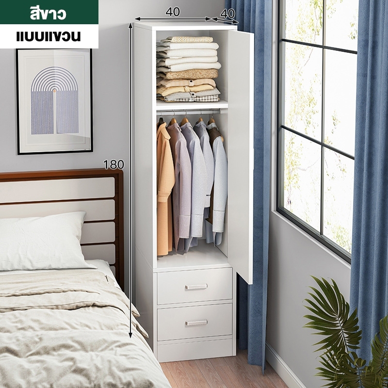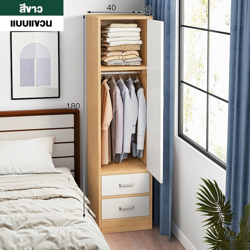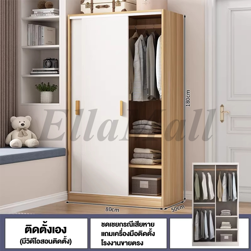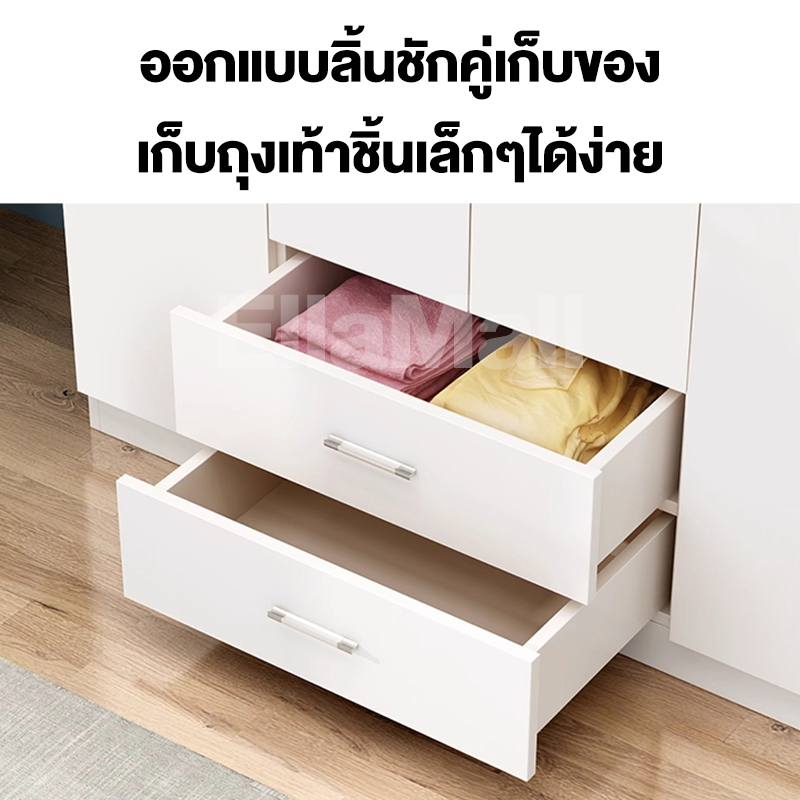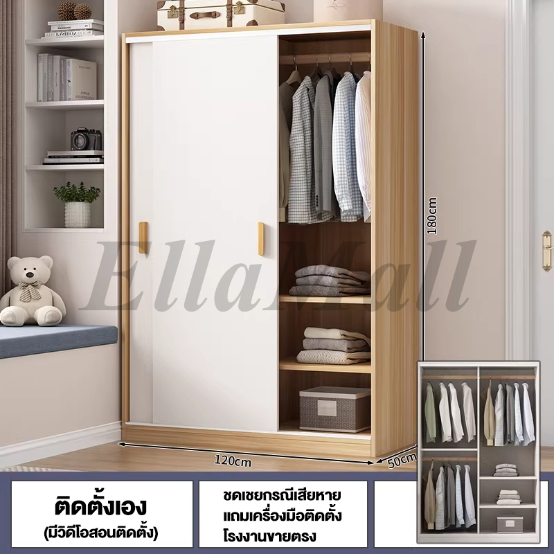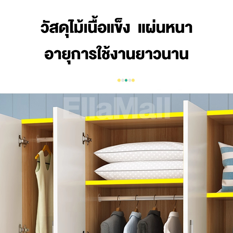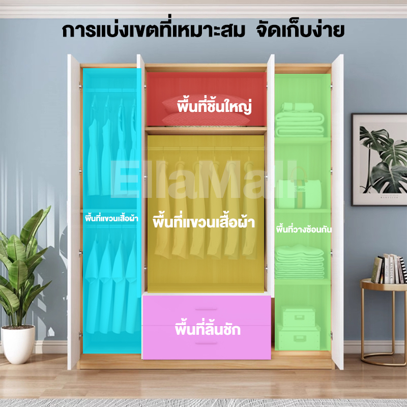 EM ตู้เสื้อผ้าใหญ่ ตู้เก็บเสื้อผ้า เก็บเสื้อผ้าได้มาก หลายชั้น แขวนเสื้อได้ ประกอบง่าย ไม้เนื้อแข็ง ส่งฟรี Wardrobe