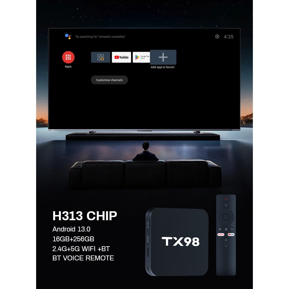 Android box กล่องทีวี 4K TV BOX Bluetooth&Wifi TX98 Pro การควบคุมระยะไกลด้วยเสียง Google Assistant