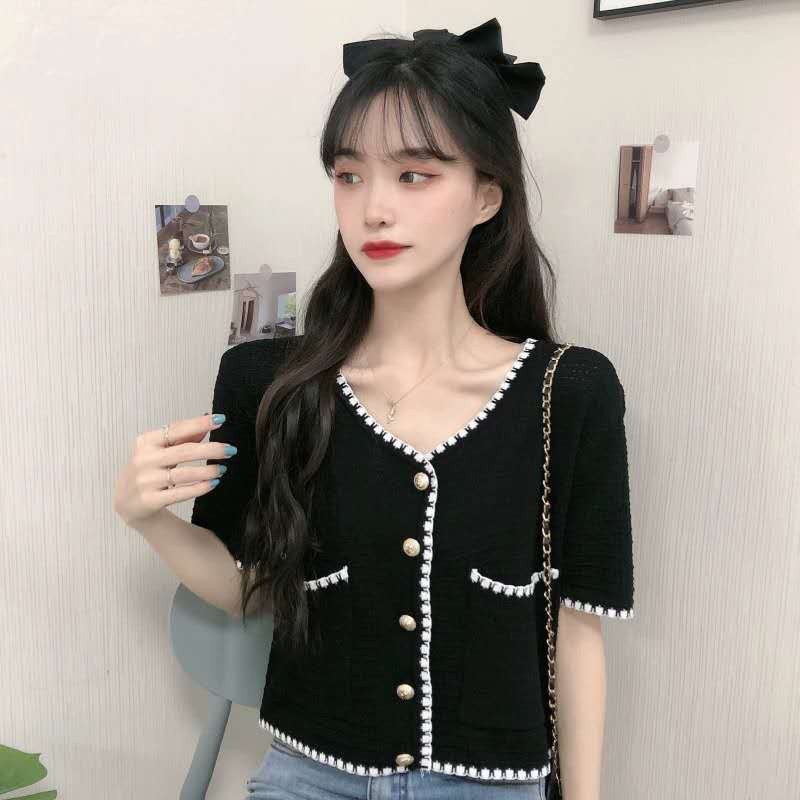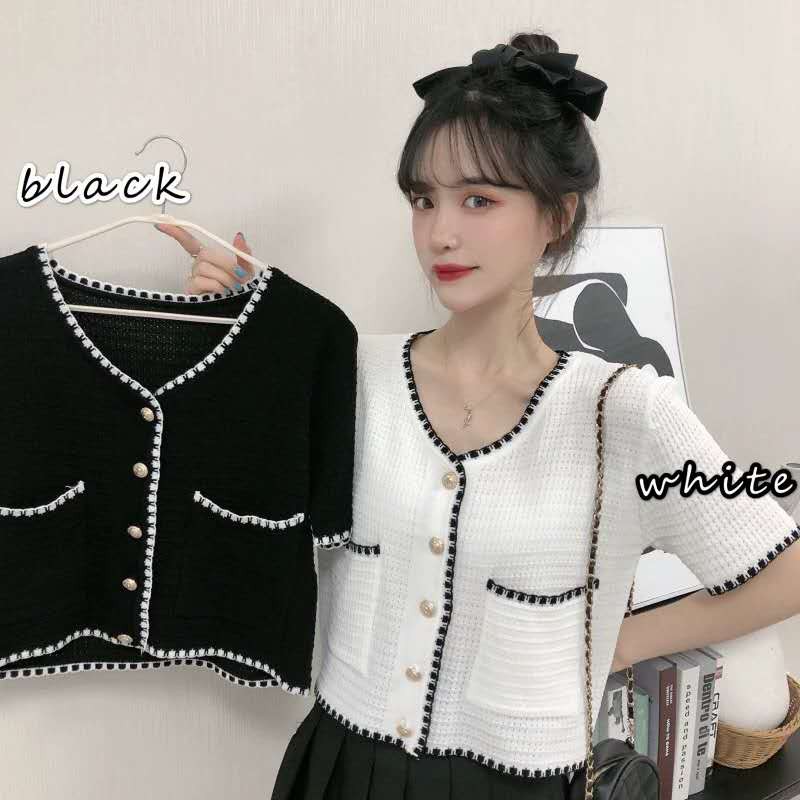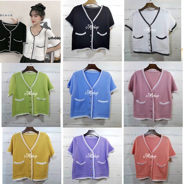 พร้อมส่ง🚚เสื้อผ้าแฟชั่นเสื้อครอปแขนสั้นกระดุมหน้าเปิดได้มีกระเป๋าแต่ง2ข้างสินค้าคุณภาพดีสวมใส่สบาย8สี#9271