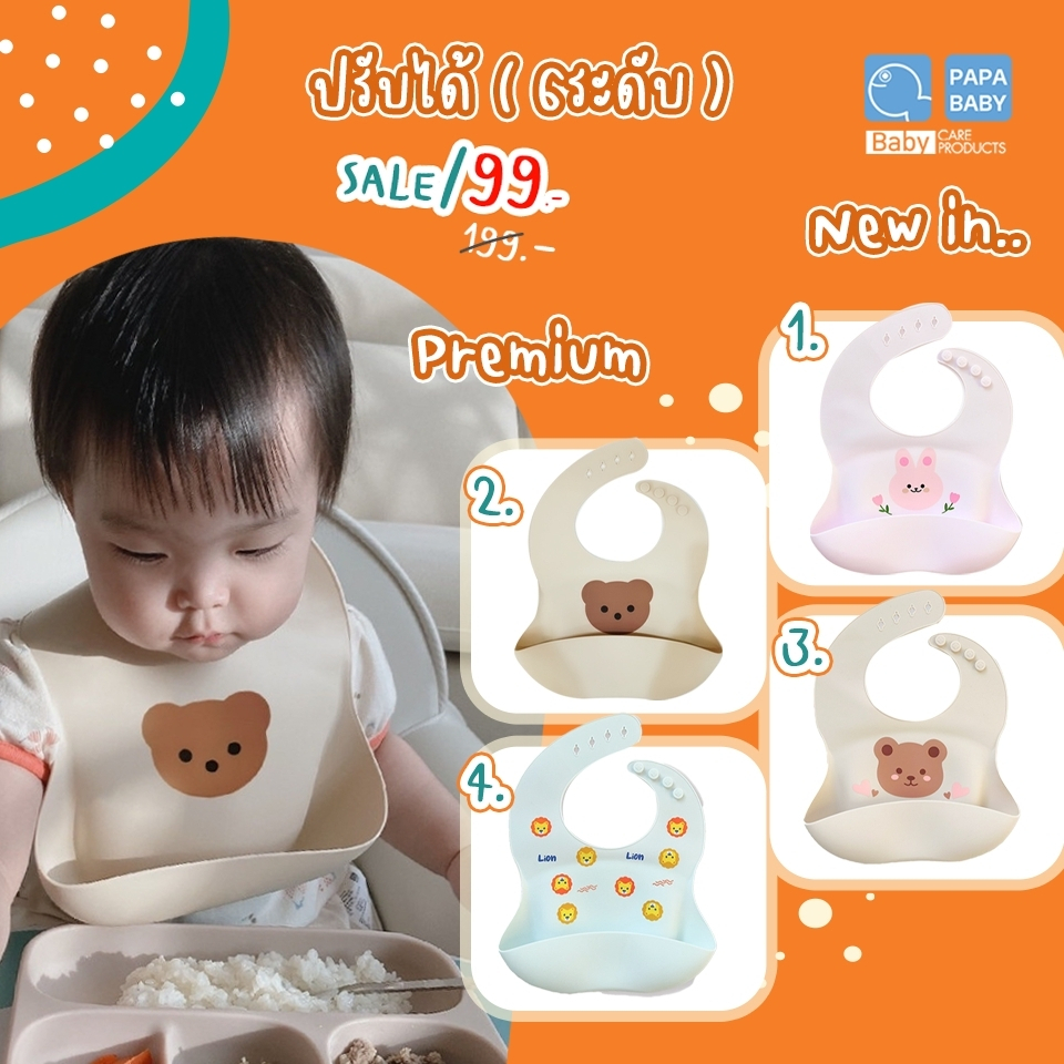PAPABABY ผ้ากันเปื้อนซิลิโคน3D ผ้ากันเปื้อนเด็ก รุ่น ST002Premium ซิลิโคน FoodGrade ปลอดภัยสำหรับเด็ก BPAFree