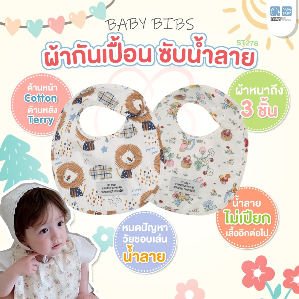 PAPA BABY ผ้ากันเปื้อน ซับน้ำลาย รุ่น ST276/ST276A ผ้าซับน้ำลายเด็ก เนื้อผ้า cotton
