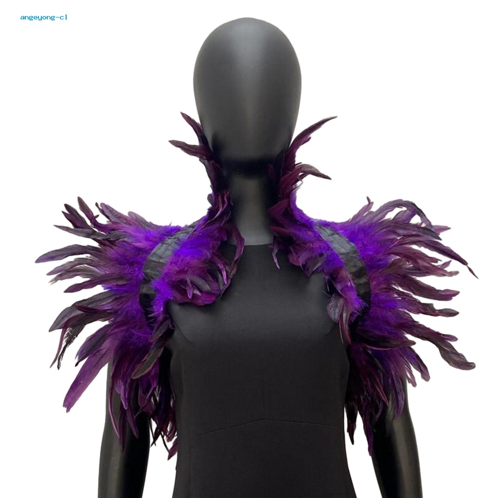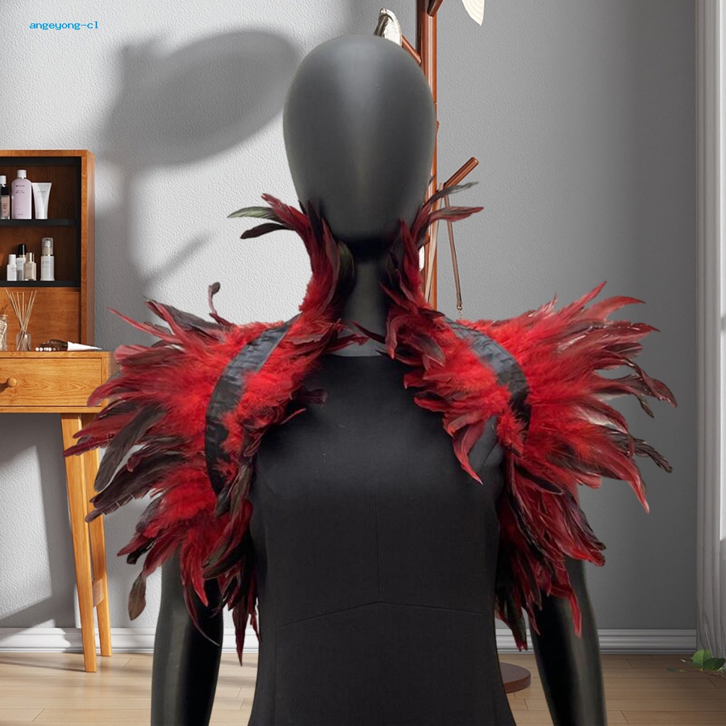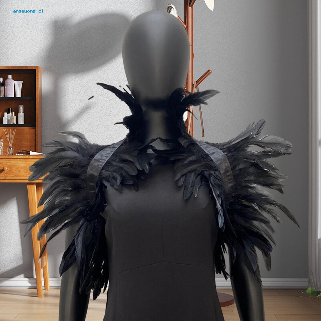 Angeyong ผ้าคลุมไหล่ ประดับขนนก ปรับได้ หรูหรา สําหรับการแสดงบนเวที คอสเพลย์