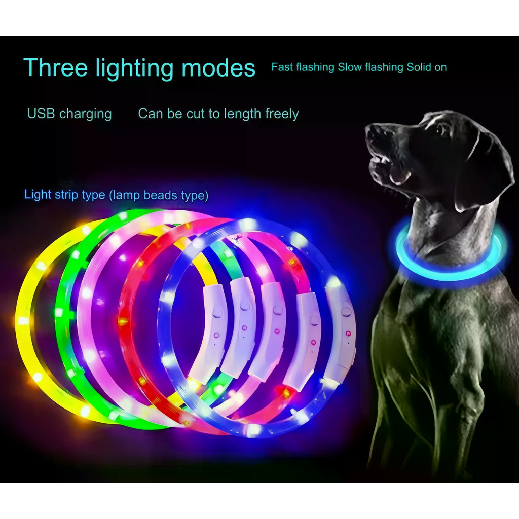 40/50/70เซนติเมตร นํา ปลอกคอสุนัข ยูเอสบี ชาร์จสัตว์เลี้ยงสุนัขคืนส่องสว่างชาร์จปกเรืองแสงสร้อยคอปกความปลอดภัยไฟกลางคืน