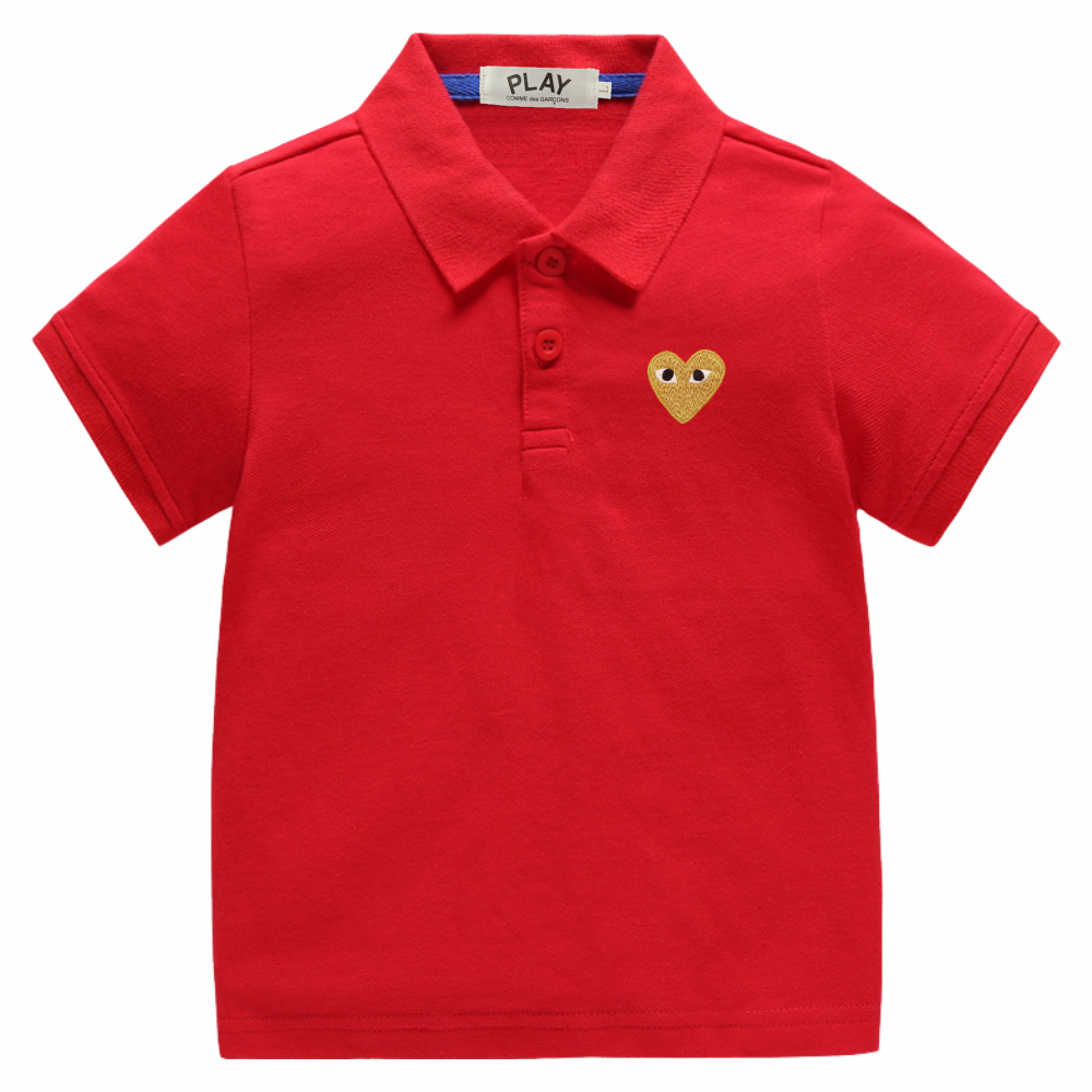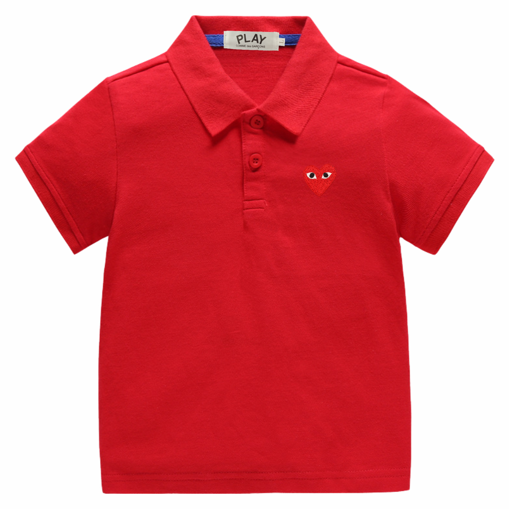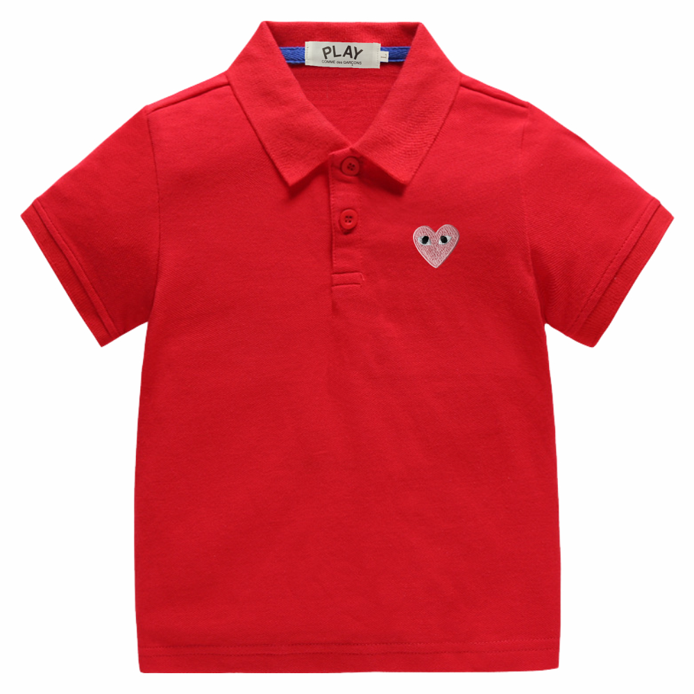PLAY Snug & Stylish Boys and Girls Cotton 100% Ultra-Soft Breathable และทนทาน POLO T-Shirt with a Dainty ปัก Heart(8-Red/Blue)