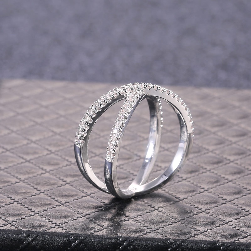 925 เงินสเตอร์ลิงหรูหรา Cross X รูปร่างผู้หญิงแหวนหมั้น Full Paved Cz หินสีเงิน Elegant Simple หญิงเครื่องประดับแหวน