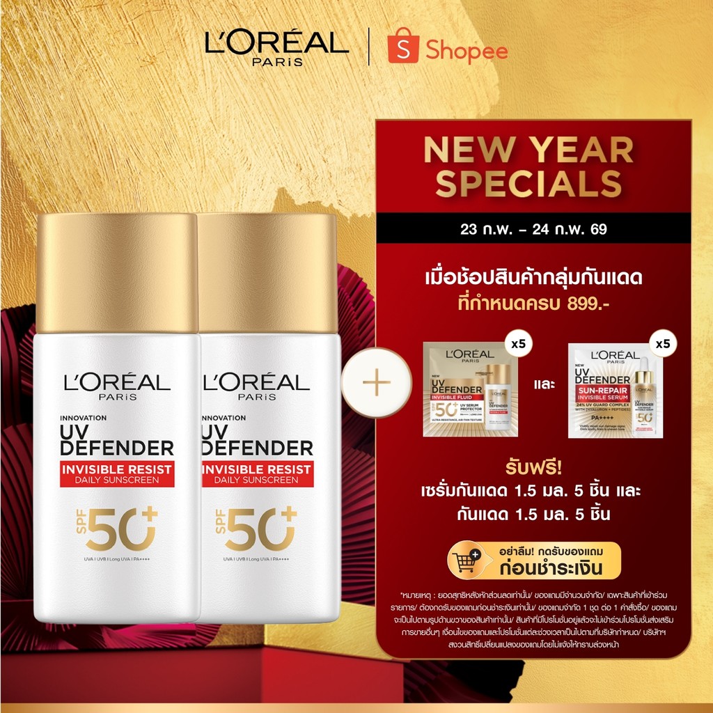 [แพ็กคู่] ลอรีอัล ปารีส L'Oréal Paris UV Defender Invisible Resist SPF50+ PA++++ 50ml กันแดดล่องหน บางเบา ไม่เหนอะหนะ