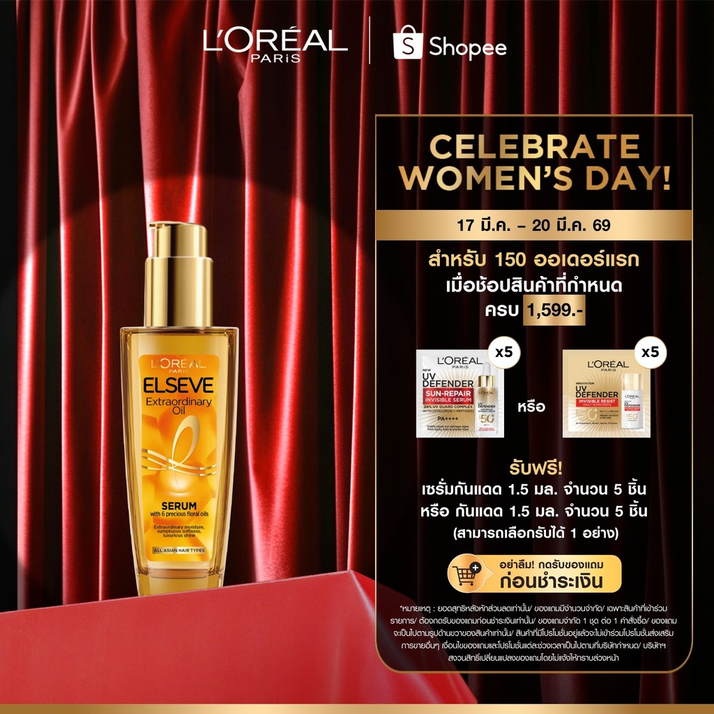 ลอรีอัล ปารีส L’Oréal Paris Elseve Extraordinary oil 100ml ออยล์เซรั่มบำรุงผมเงางาม ช่วยชุบชีวิตผมให้กลับมานุ่มลื่น