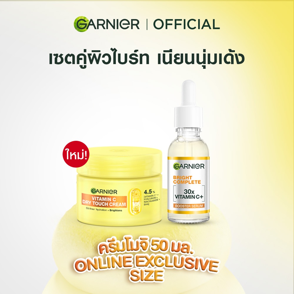 [เซตสุดคุ้ม] ซาลิไซลิคดรายทัชครีม + เซรั่ม 30มล. Garnier, ครีมบำรุงผิวหน้า ครีมทาหน้า ครีมโมจิผิวเด้งนุ่มกระจ่างใส
