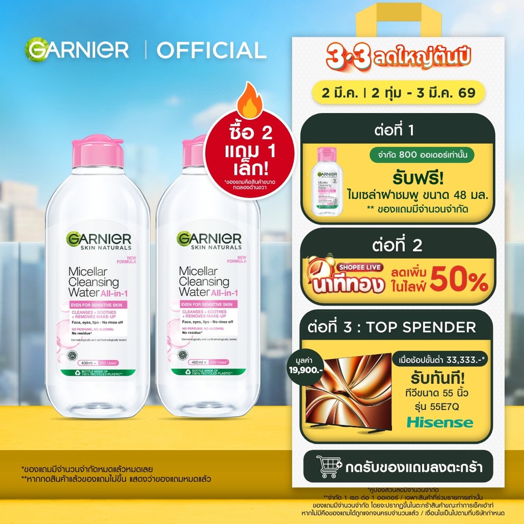 [แถมจุก 1 ขวดเล็ก! +เพียงชิ้นละ175.-ในไลฟ์] [แพ็คคู่สุดคุ้ม] การ์นิเย่ ไมเซล่าฝาชมพู คลีนซิ่ง วอเตอร์ เซนซิทีฟ สกิน 400ม