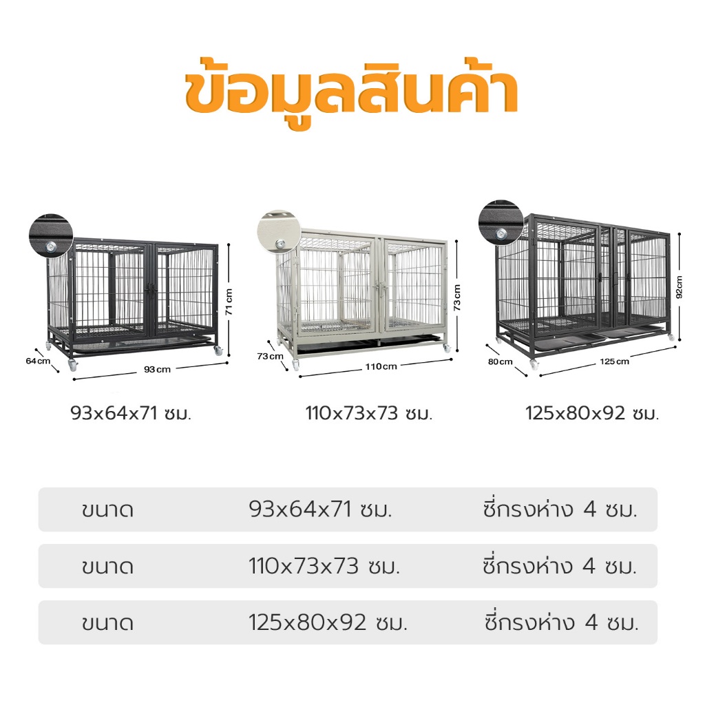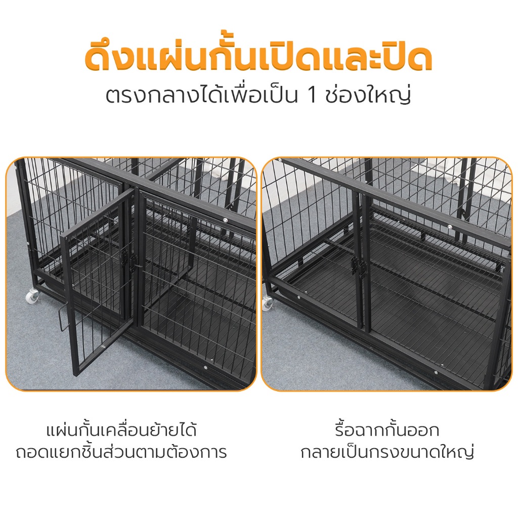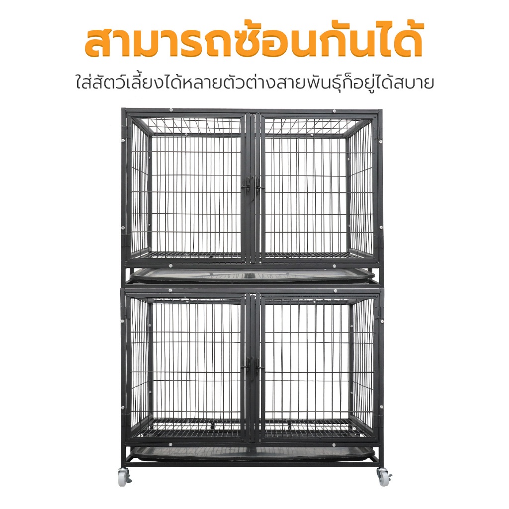 กรงสัตว์เลี้ยง บ้านสุนัข กรงสุนัขขนาดใหญ่ แข็งแรง มีล้อเลื่อน พร้อมถาดรองกันเลอะ พับเก็บง่าย เคลื่อนย้ายสะดวก