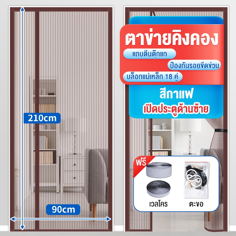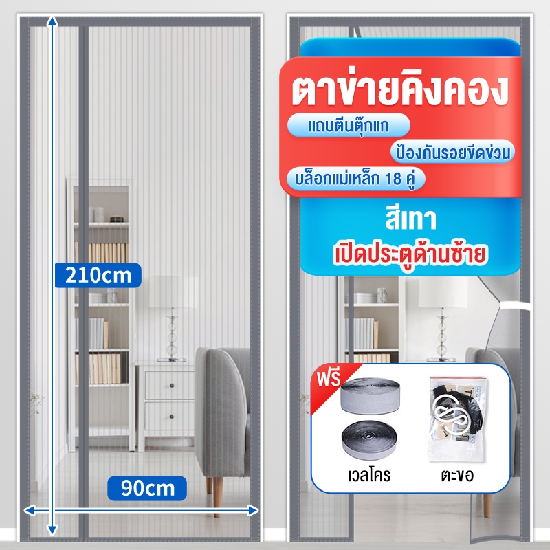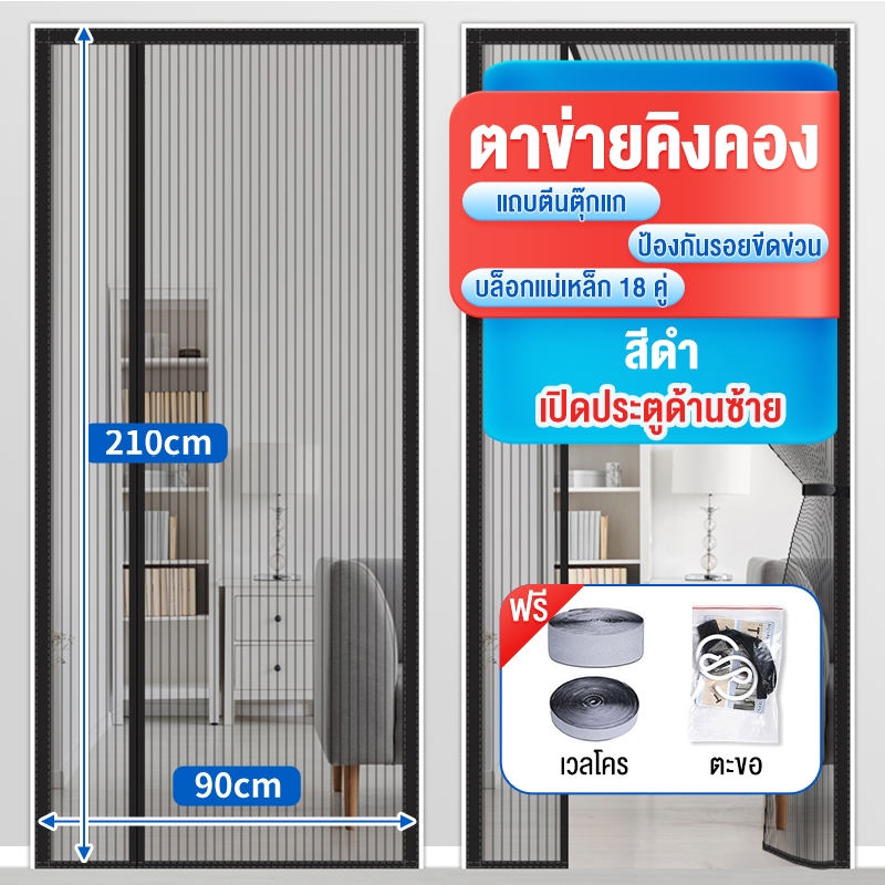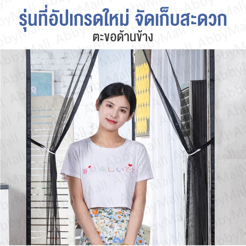 ABBY ม่านแม่เหล็กกันยุง ม่านกันยุงประตู ไฟเบอร์กลาส 90X210/100X210 ซม. แถบแม่เหล็ก 16 คู่ ตีนตุ๊กแกติดรอบแน่นมาก