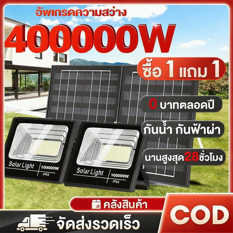 【ซื้อ 1 แถม 2】โซล่าเซลล์ solar lights ไฟโซล่าเซลล์ ค่าไฟฟรี ชาร์จไฟตอนกลางวัน สว่างเมื่อฟ้ามืด กันน้ำ และกันฟ้าผ่า