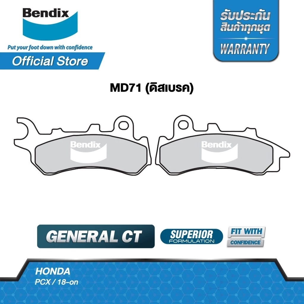 ผ้าเบรคหน้า BENDIX รหัส MD71 สำหรับ PCX160 STD / PCX150 (2018+) / PCX HYBRID / ZOOMER-X ของแท้(ผ้าเบรคหน้า MD71)